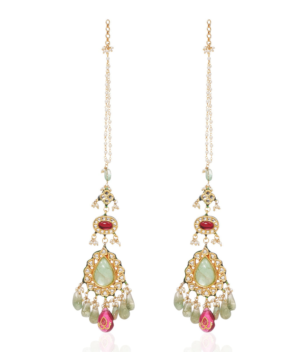 EKANI RED & GREEN KUNDAN CHANDBALI