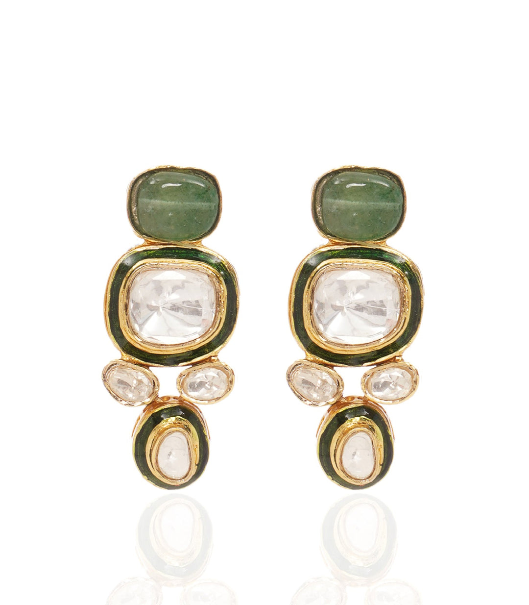 ILINA GREEN KUNDAN STATEMENT EARRING