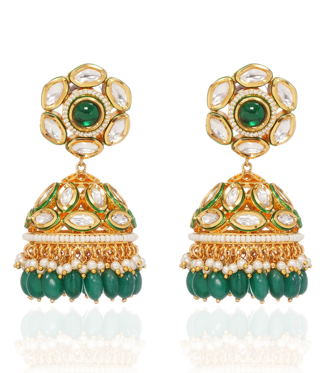 GOURVI GREEN KUNDAN STATEMENT EARRING