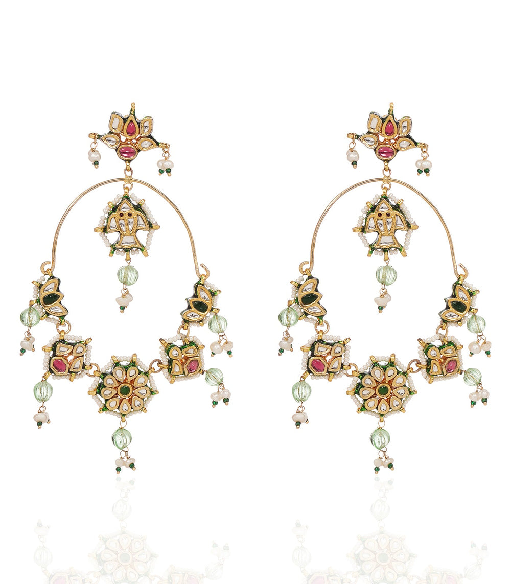 BHUVI RED & GREEN KUNDAN CHANDBALI