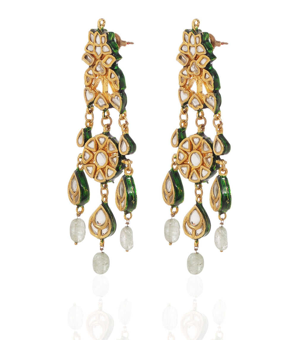PRISHA GREEN KUNDAN STATEMENT EARRING