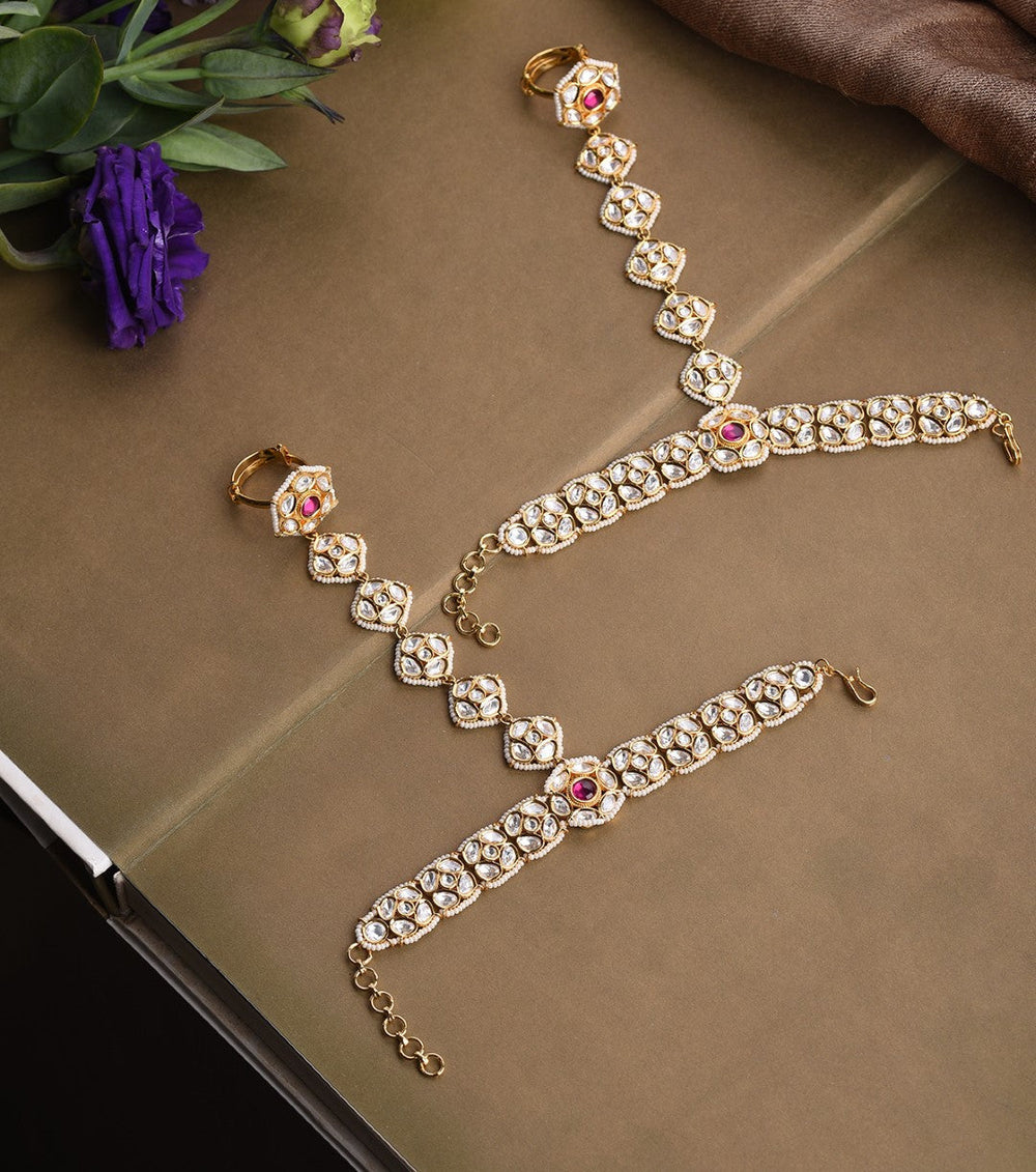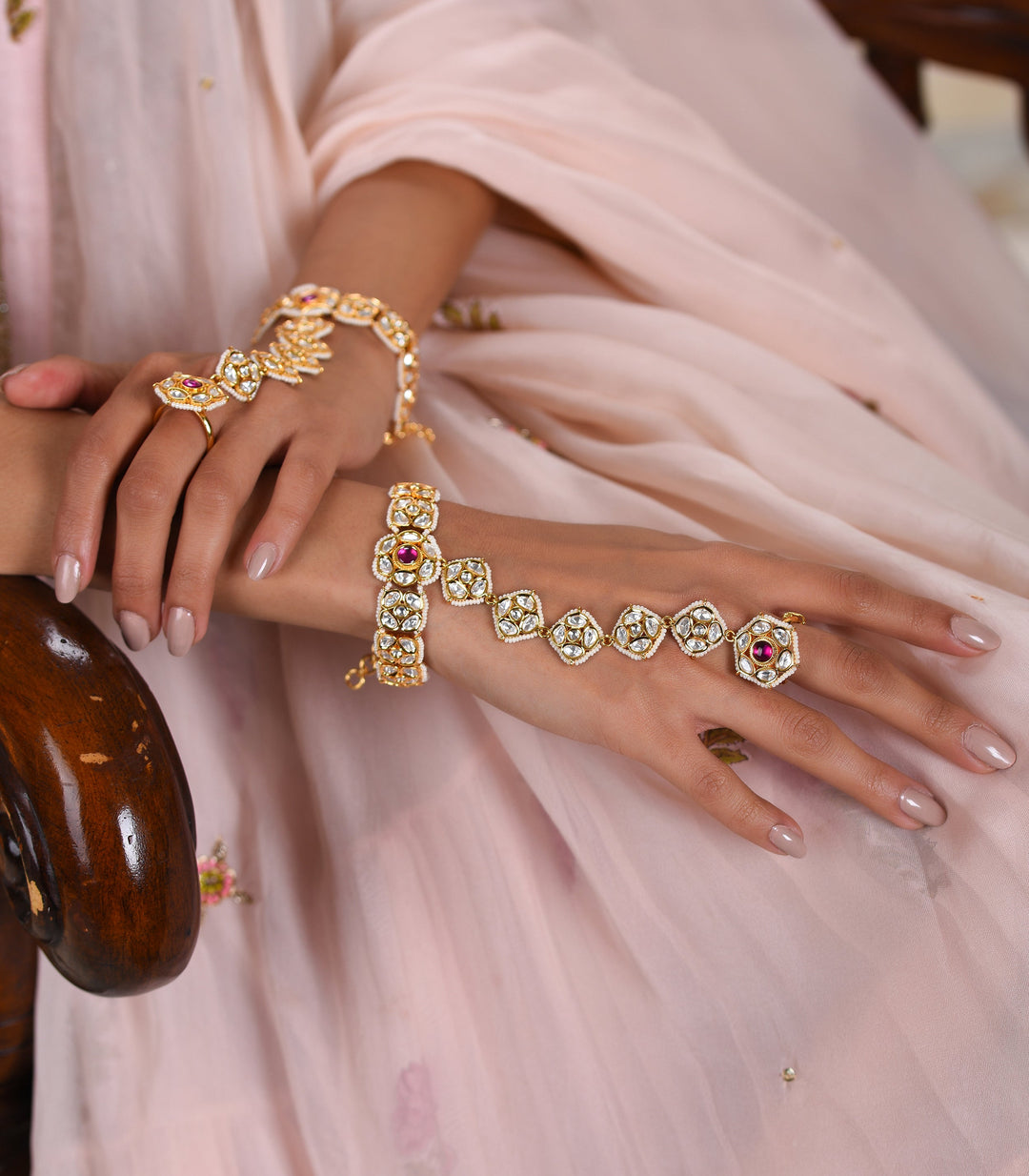 RADHIKA RED GOLD PLATED HATHPHOOLS