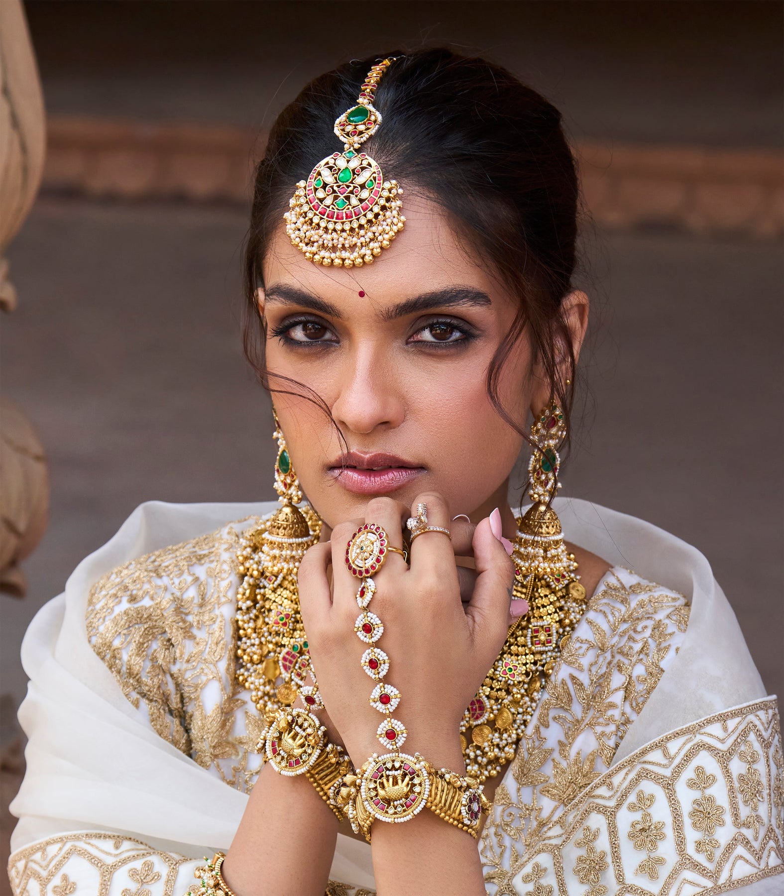 HEMAKANTI RED & GREEN  KUNDAN HATHPHOOL