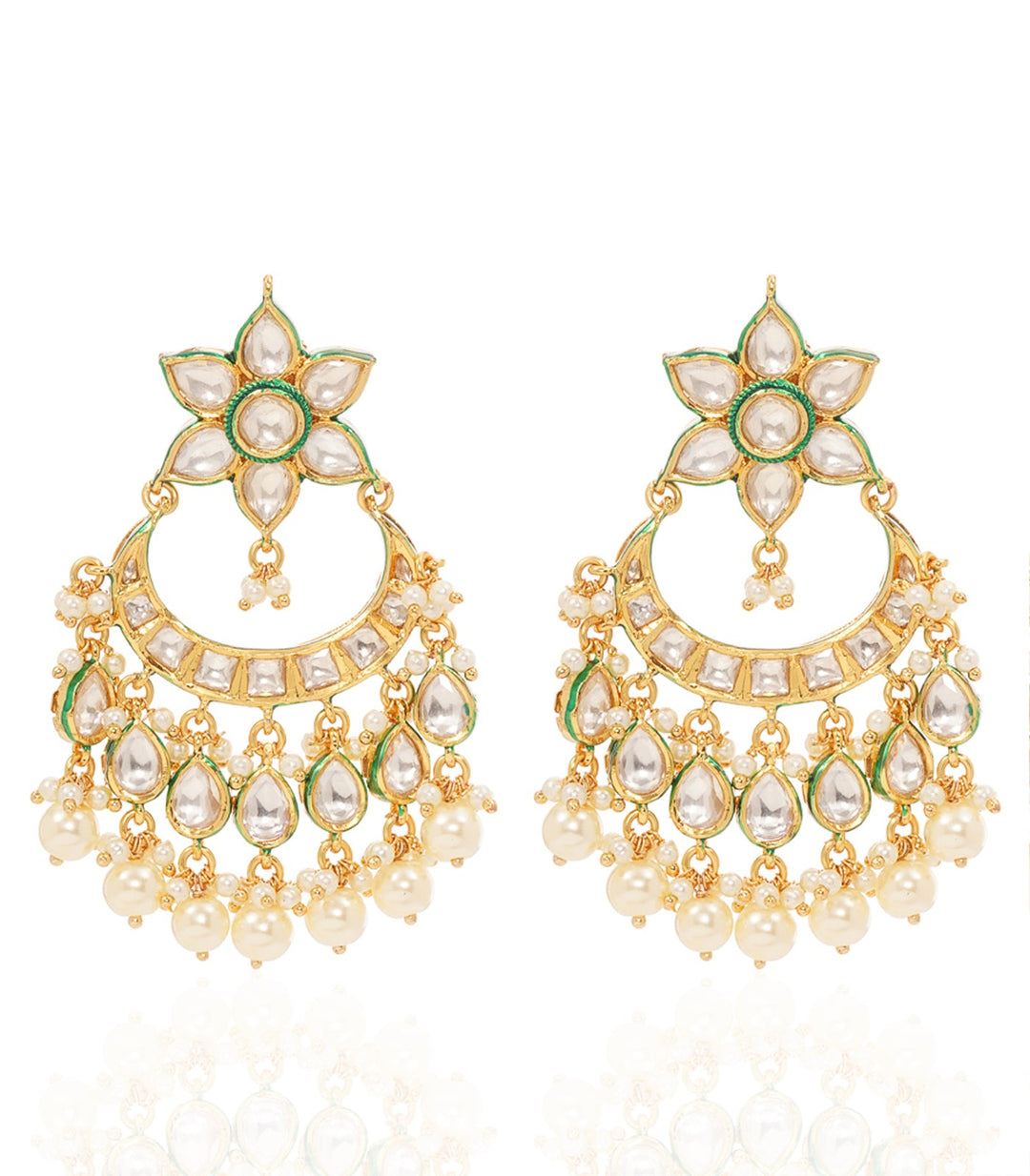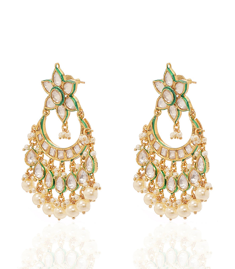 PRISHA GREEN KUNDAN STATEMENT EARRING