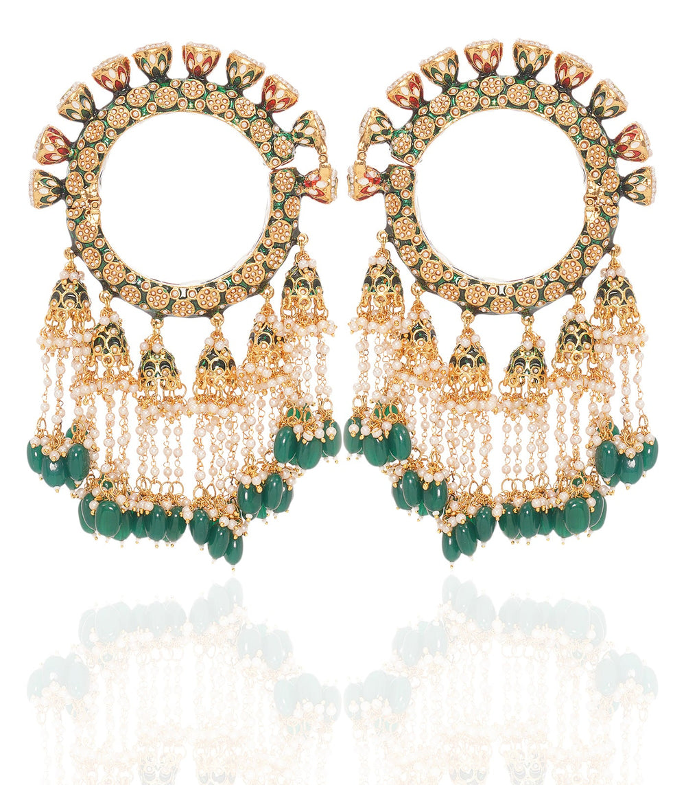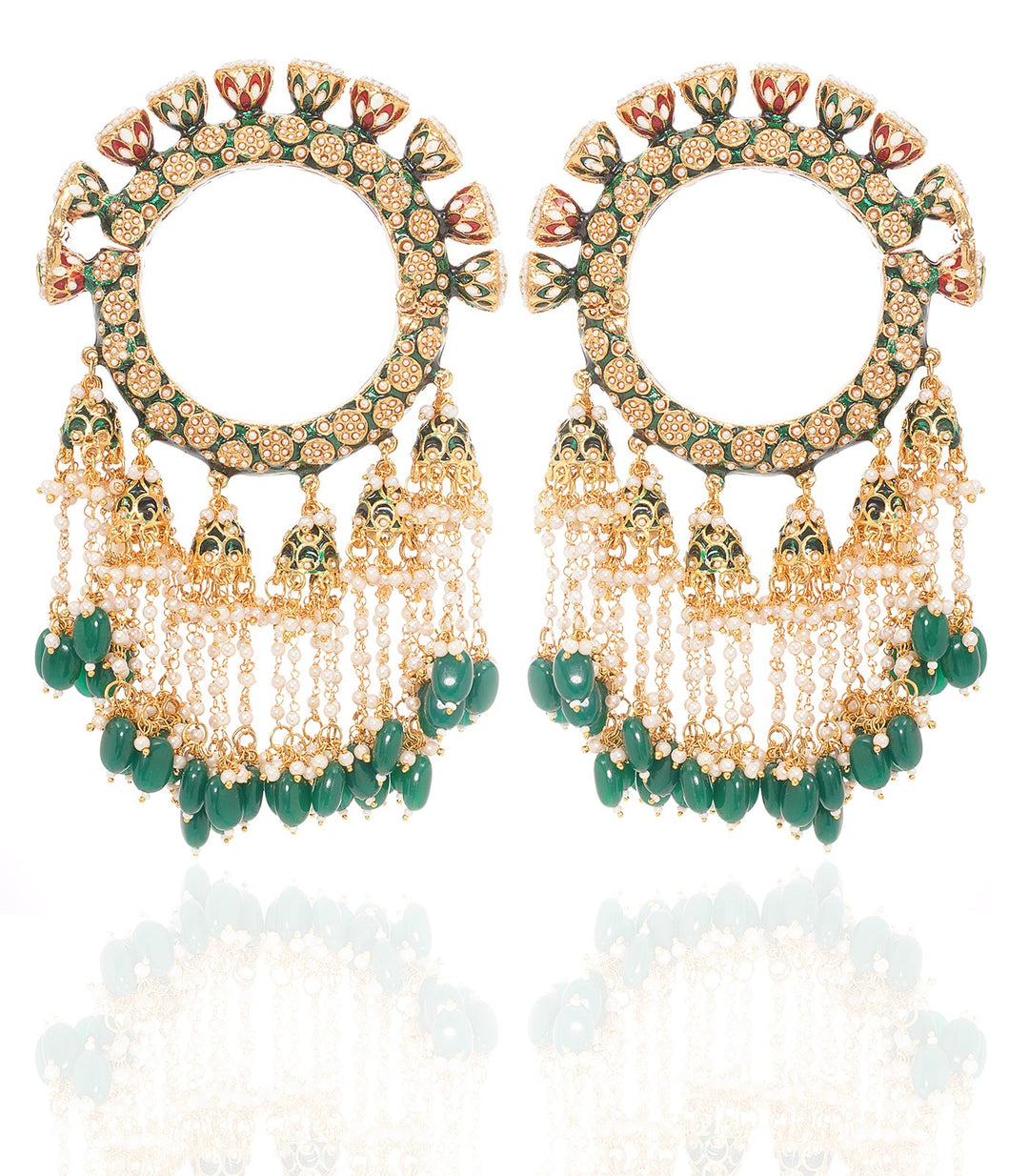 ANMARA RED & GREEN KUNDAN CHANDBALI
