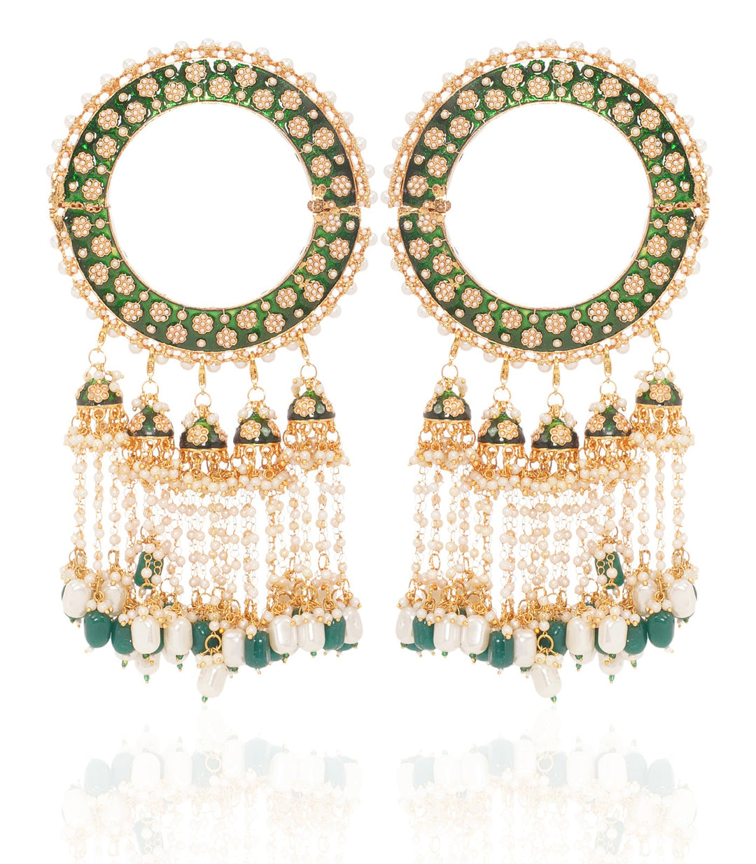 GOURVI GREEN KUNDAN STATEMENT EARRING