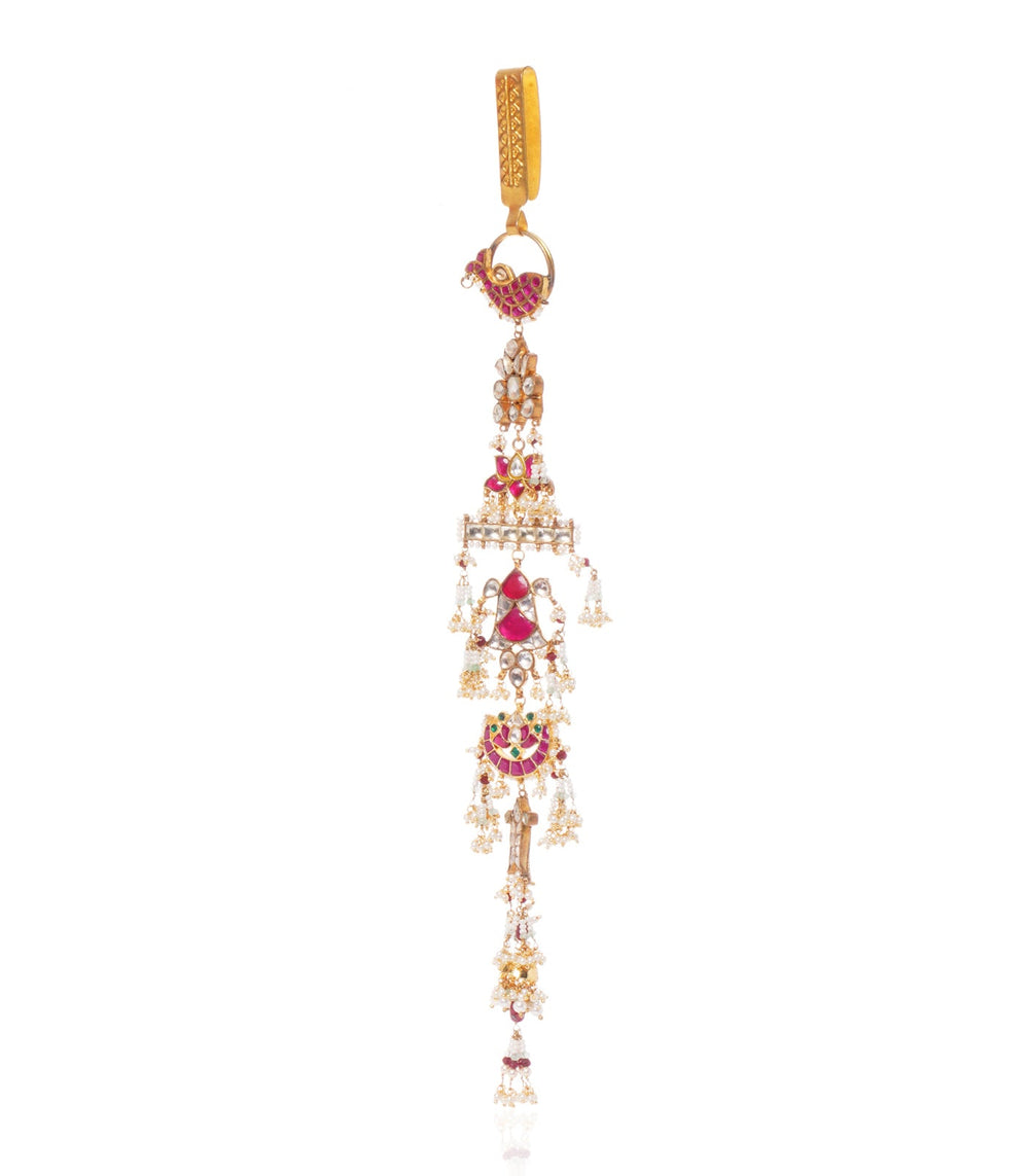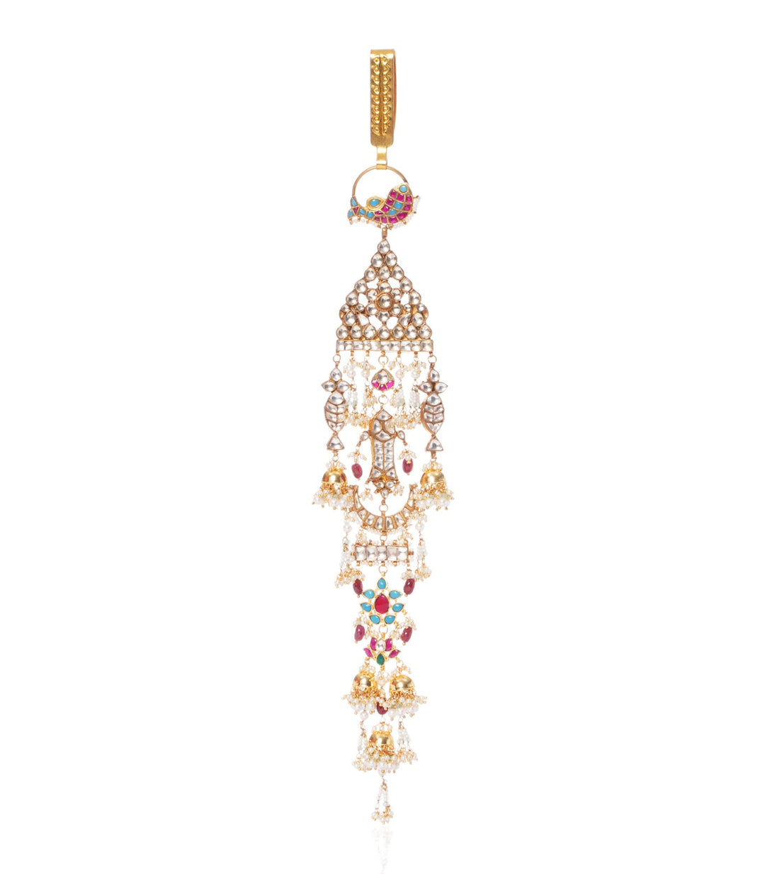 YOGESHWARI GREEN KUNDAN TIKA WITH PEARL & GREEN ONYX DROPS