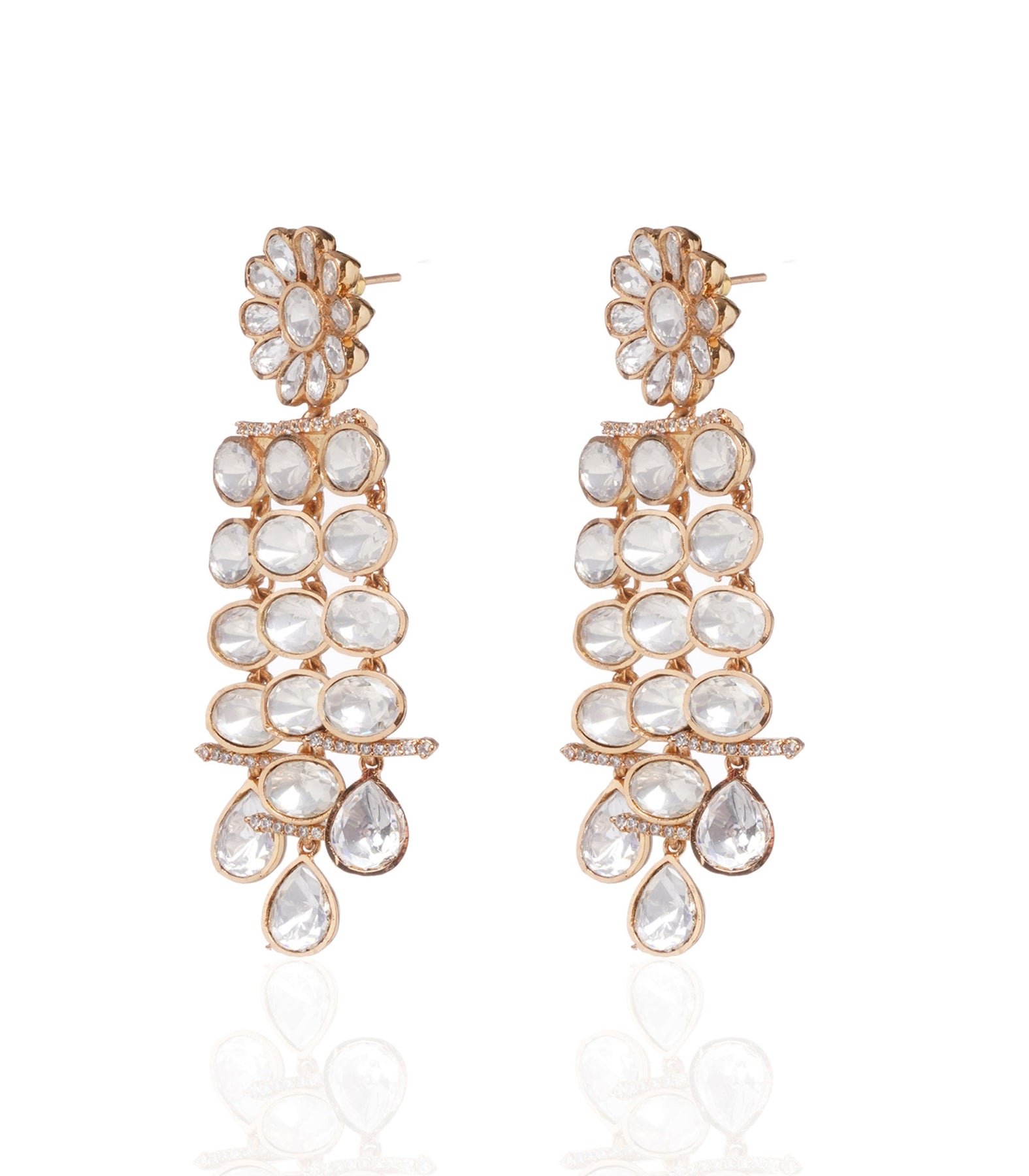 Modern allure meets timeless elegance in our Polki necklace set. Clear moissanite stones sparkle on sterling silver, artfully gold-plated for a chic finish. Elevate your style with this contemporary design, a statement of sophistication.