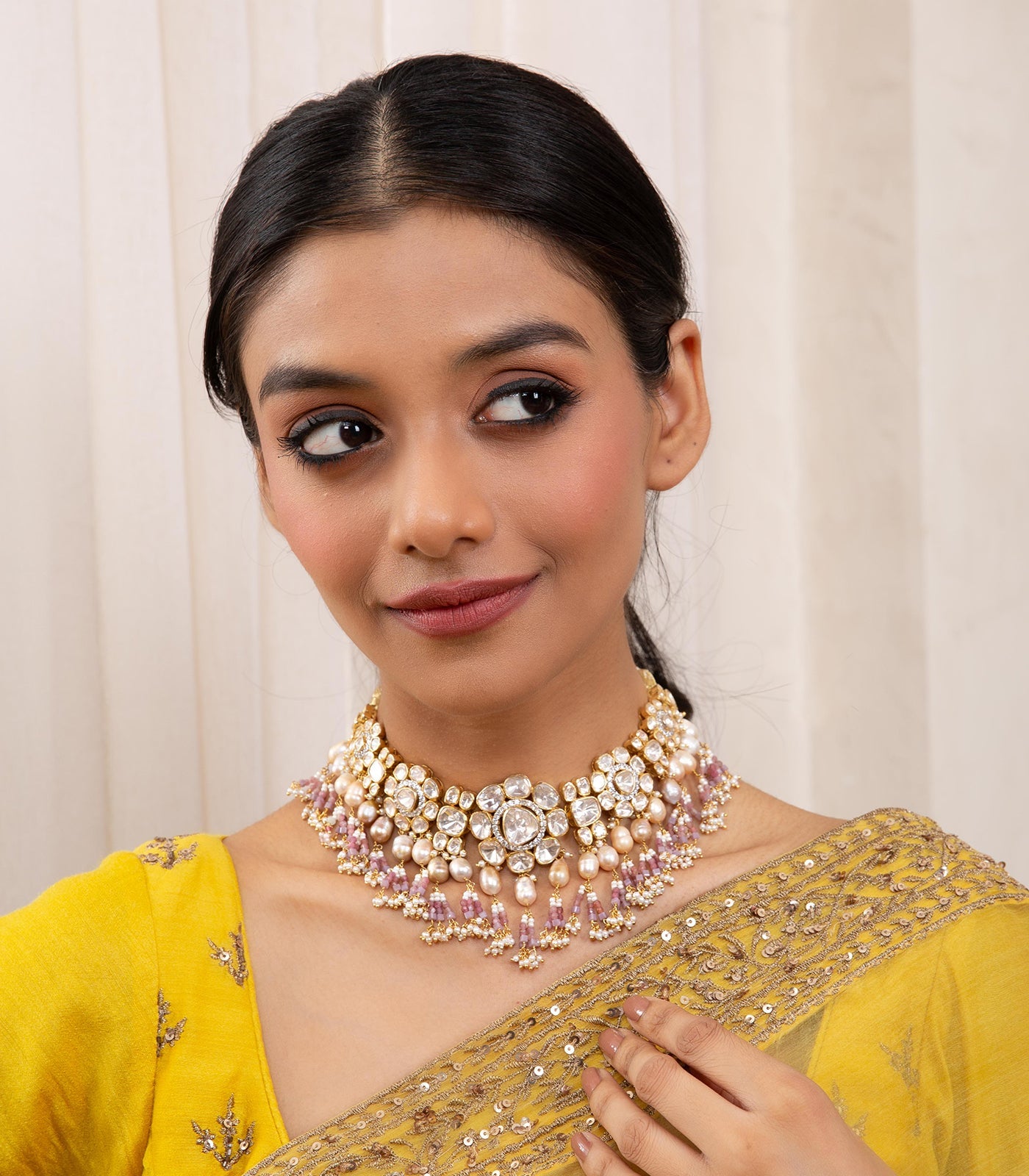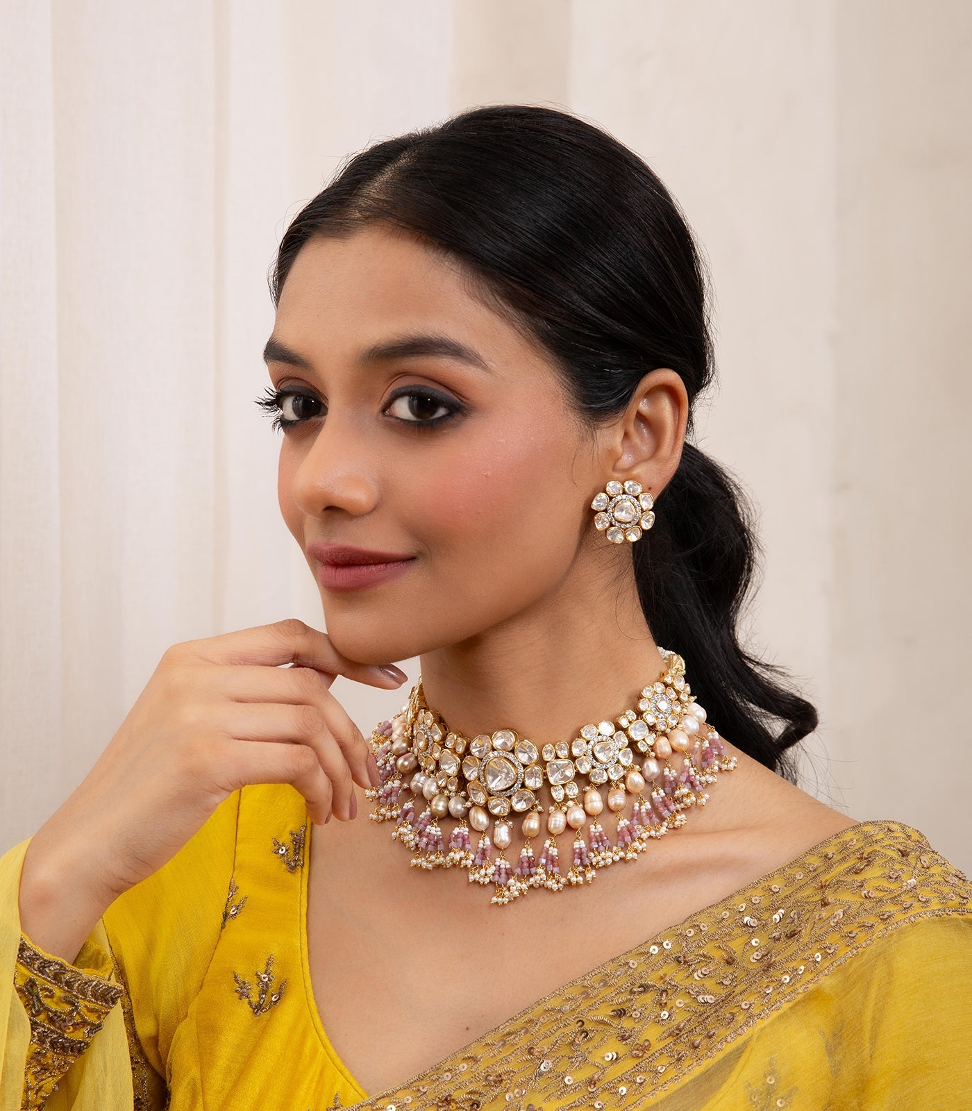 NIDHIMA PINK MOISSANITE NECKLACE SET