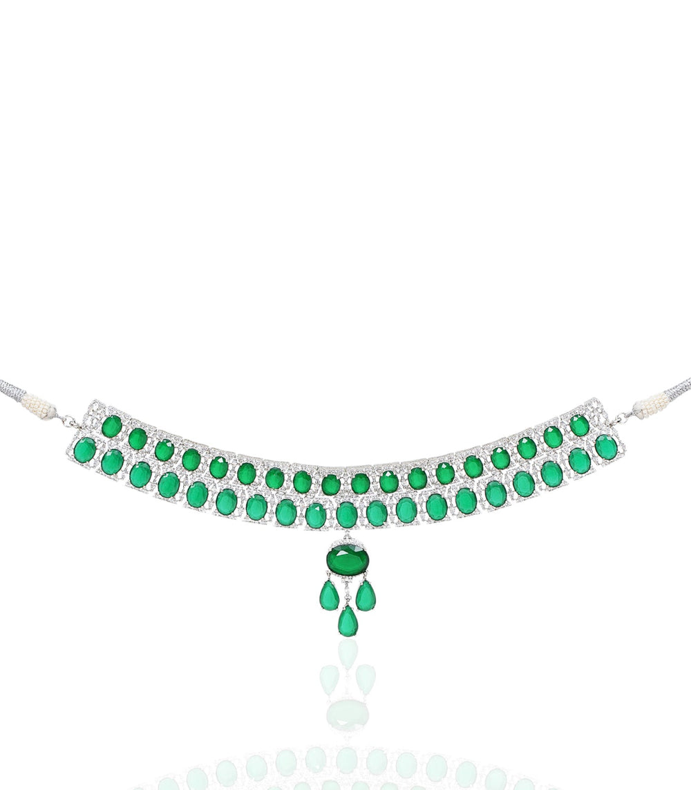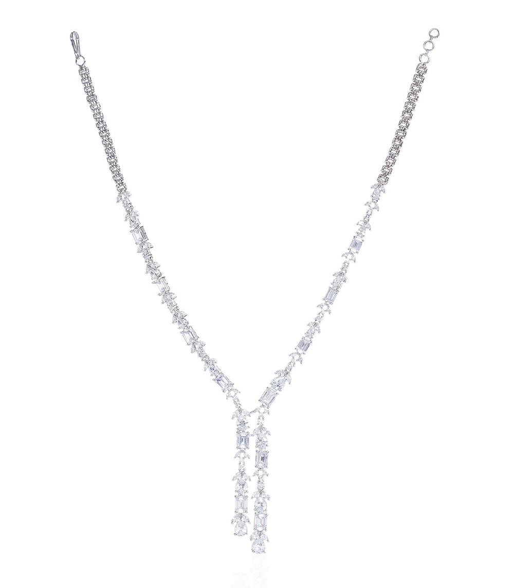 PRISHA SILVER FINISH ZIRCON NECKLACE