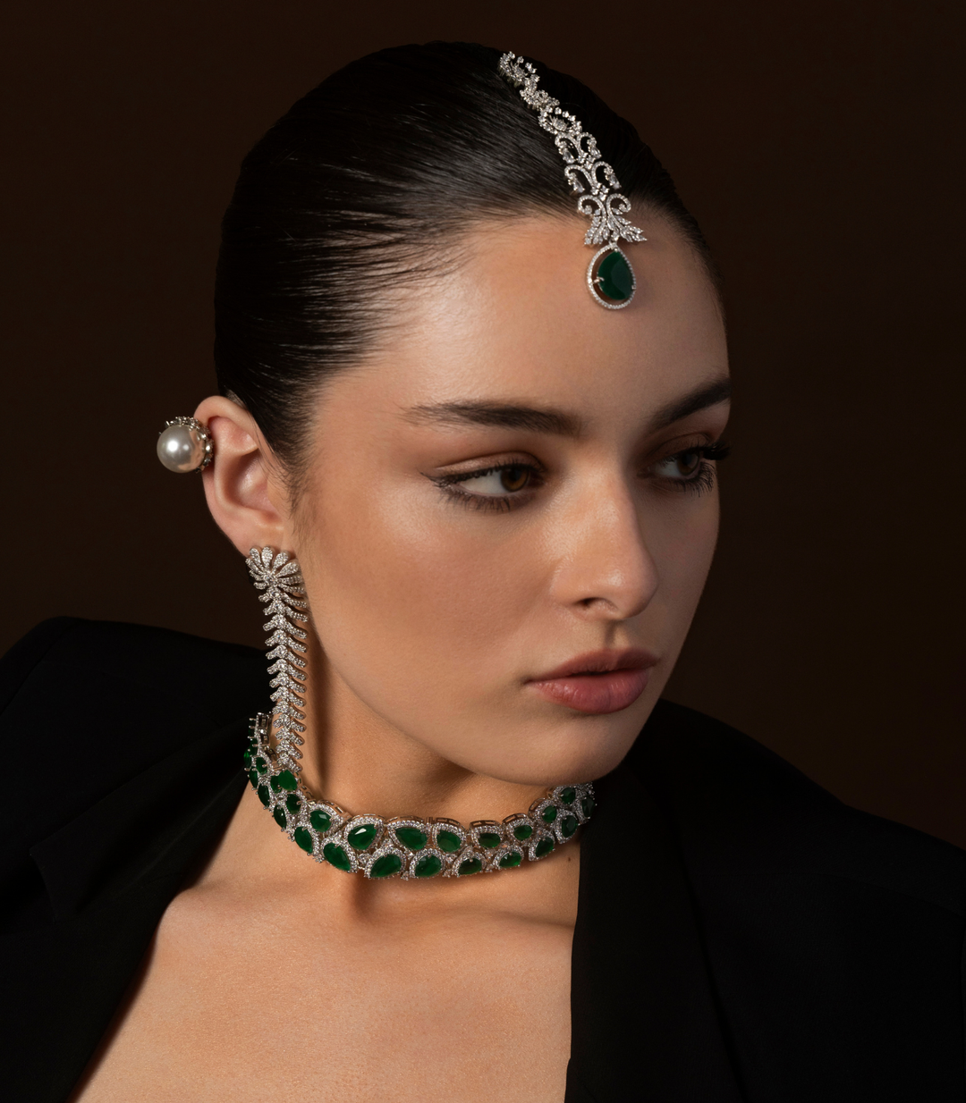KALPNA GREEN ZIRCON STATEMENT EARRING