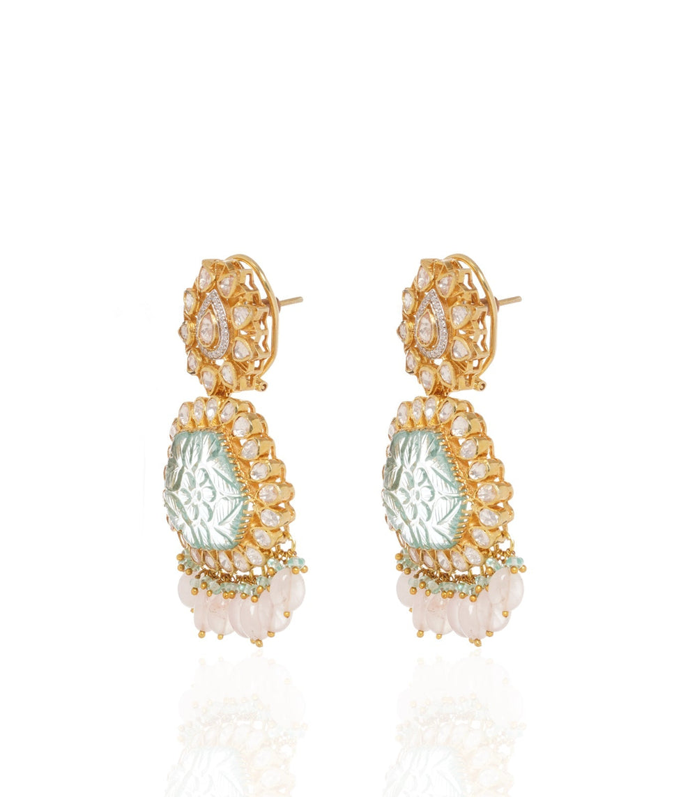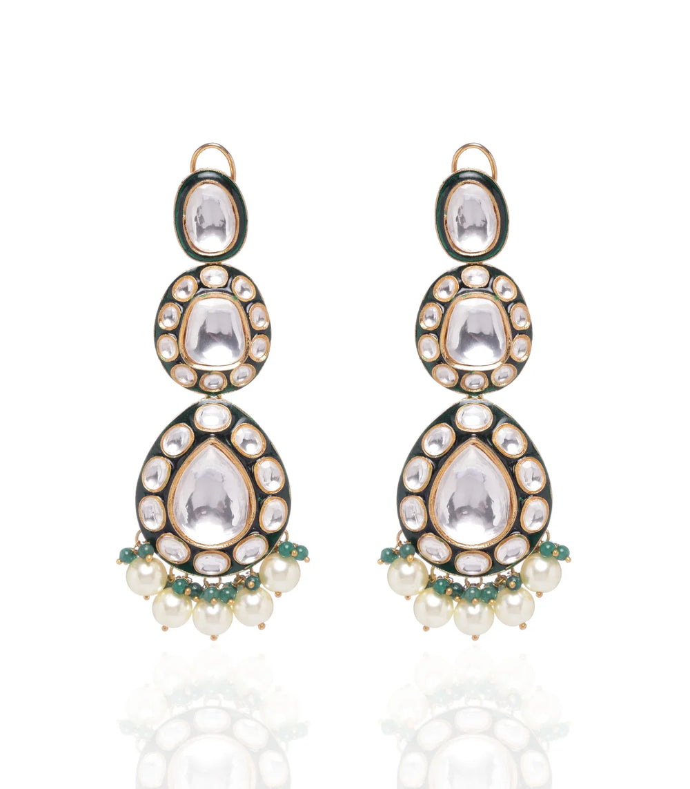 YOGESHWARI GREEN KUNDAN TIKA WITH PEARL & GREEN ONYX DROPS
