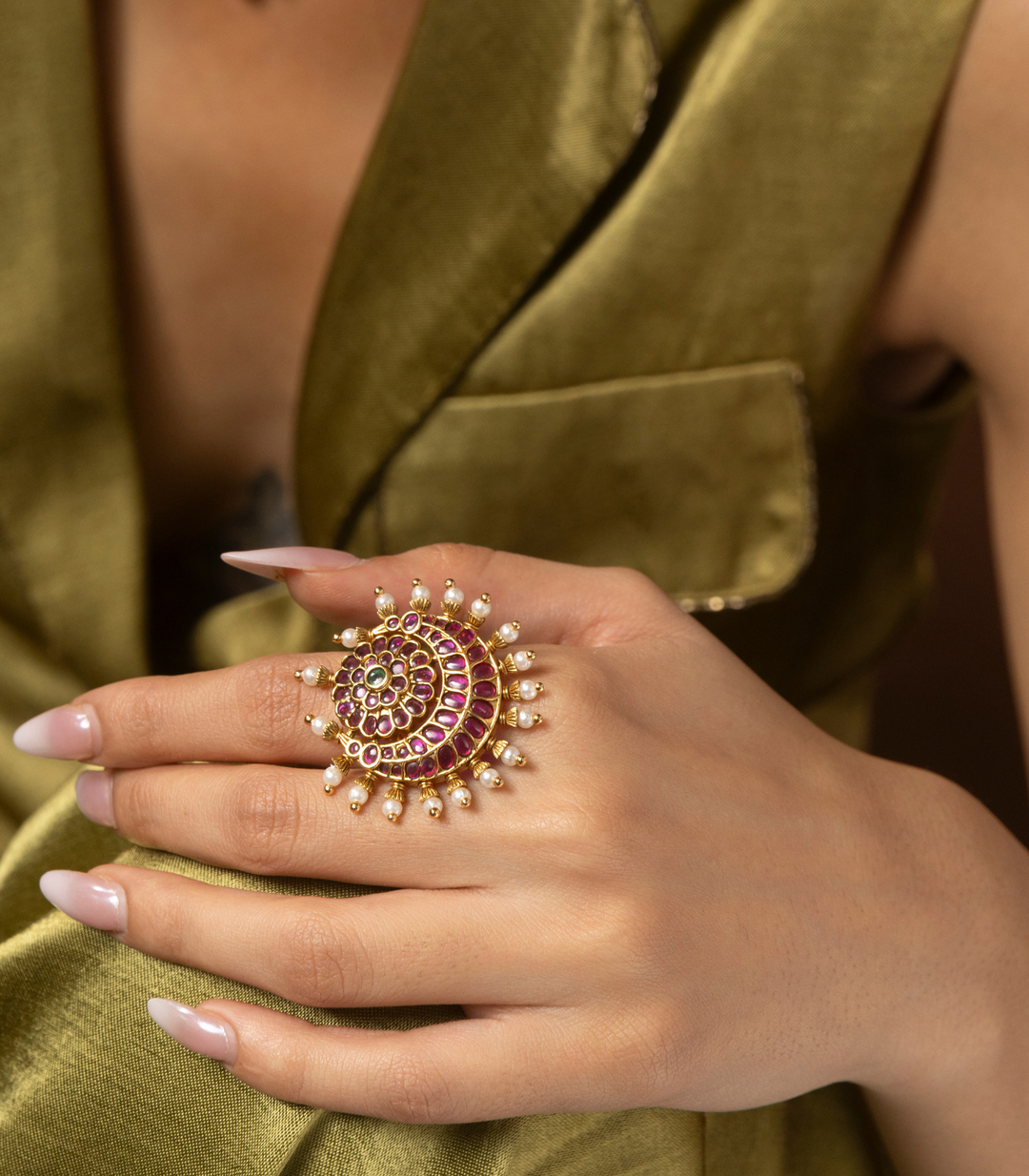 RUPALI PINK & GREEN KUNDAN RING