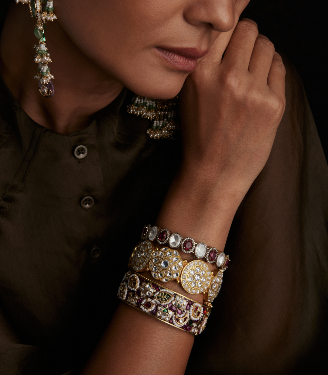 RISHA GREEN POLKI BANGLES