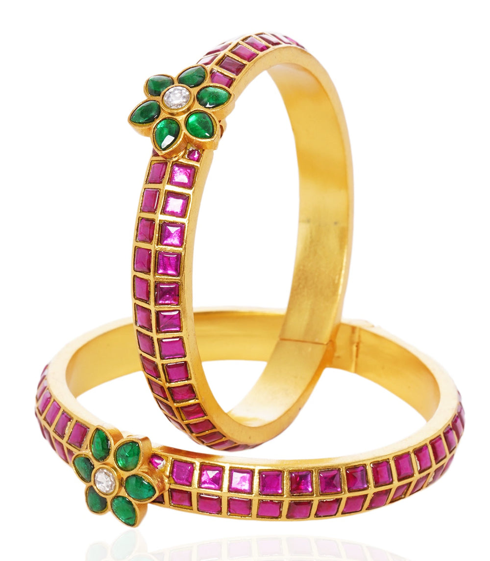 YASHI RED & GREEN KUNDAN BANGLES