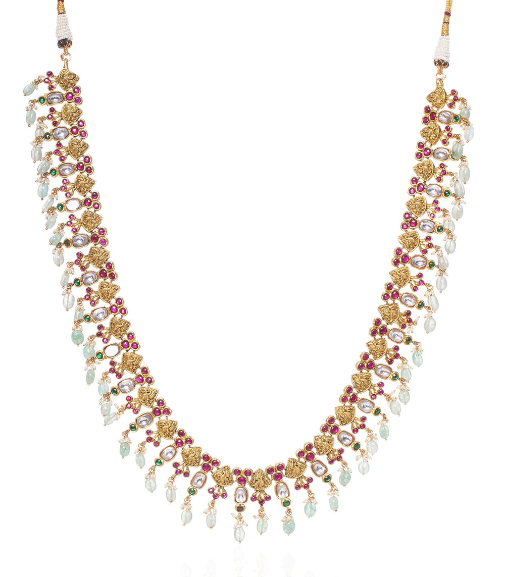 PARVATI GREEN KUNDAN LONG NECKLACE