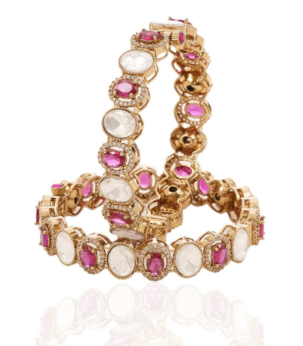 INDRA PINK & GREEN KUNDAN BANGLES