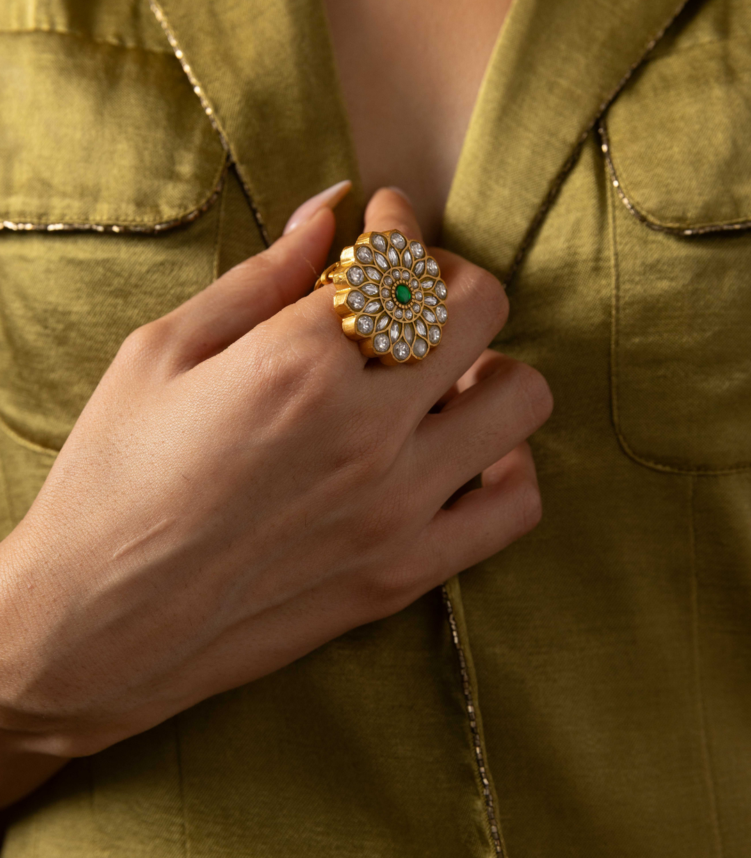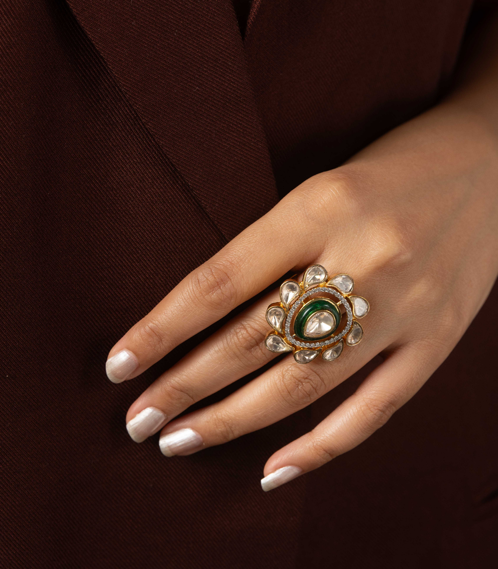 GEETA GREEN KUNDAN RING