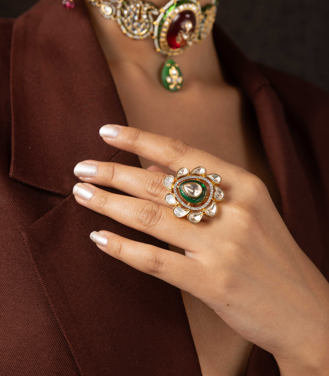 AMANI GREEN POLKI RING