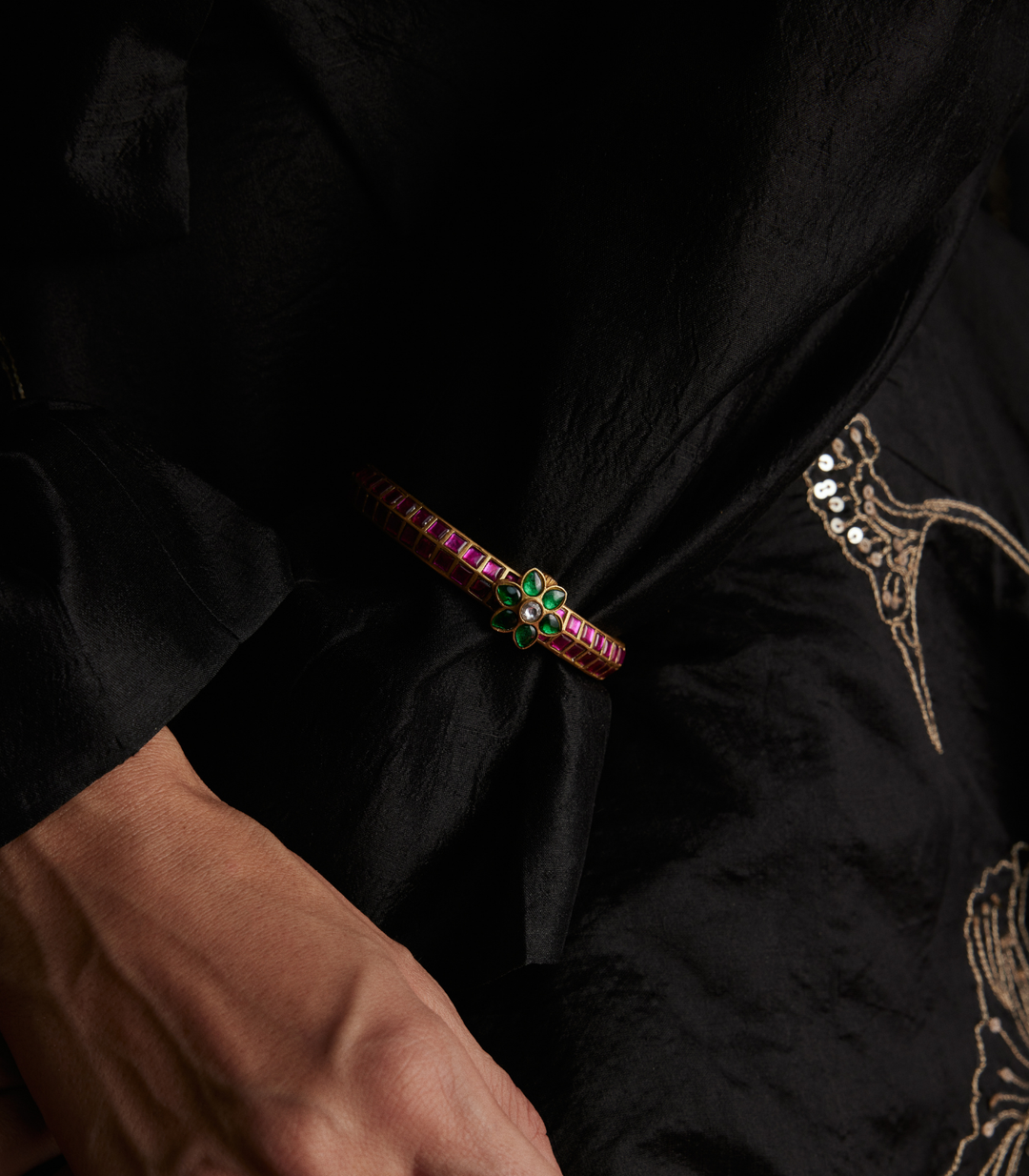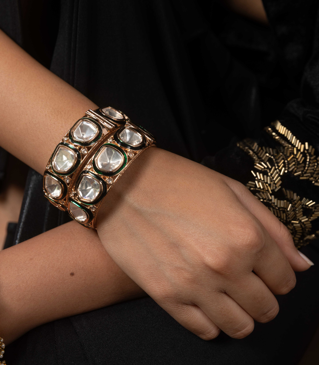 YASHIKA BLACK POLKI BANGLE