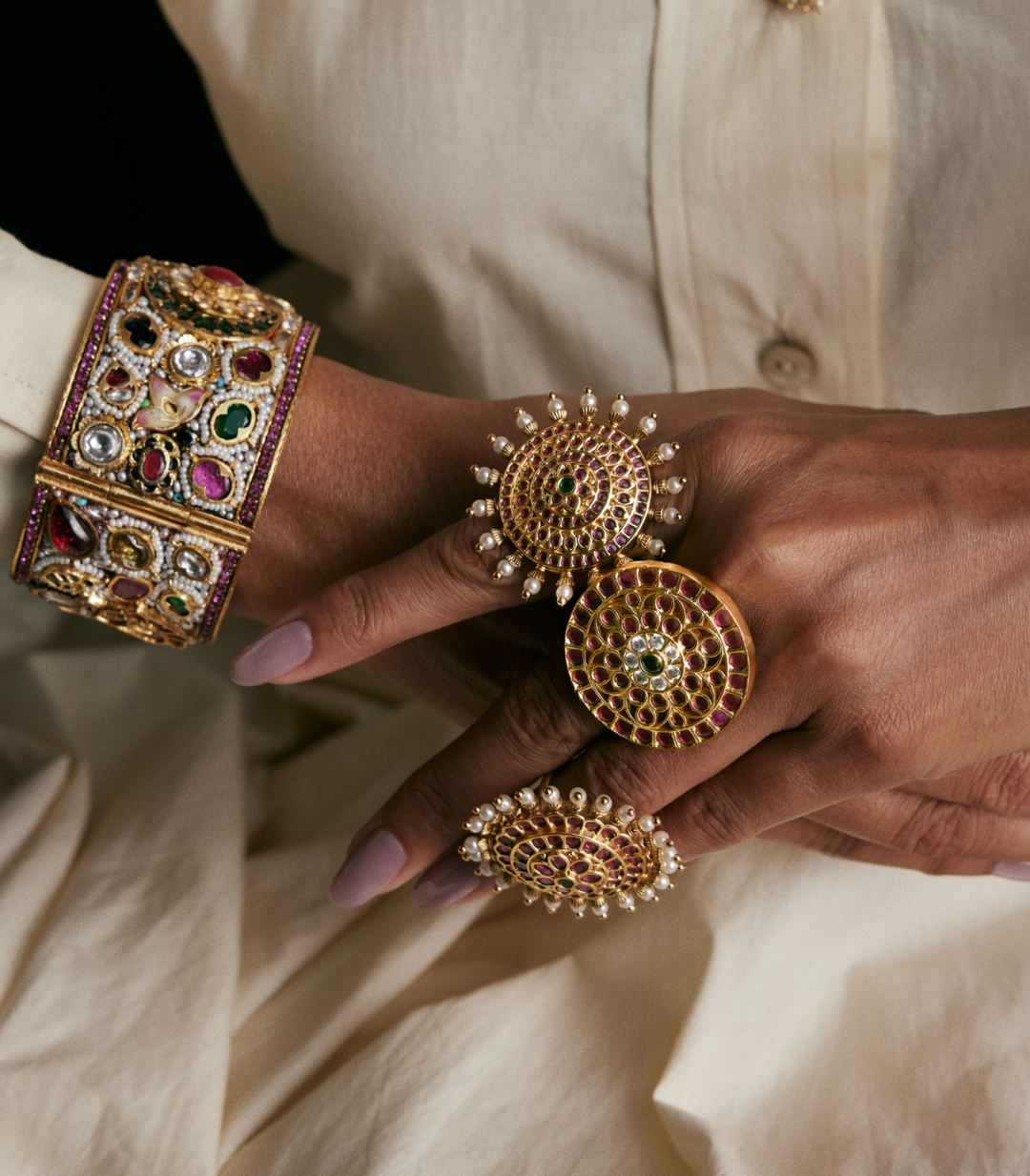 ANMARA GOLD PLATED POLKI RING