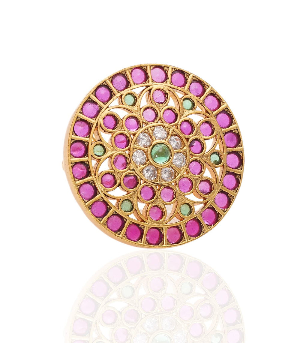 MANDALA RED & GREEN KUNDAN RING