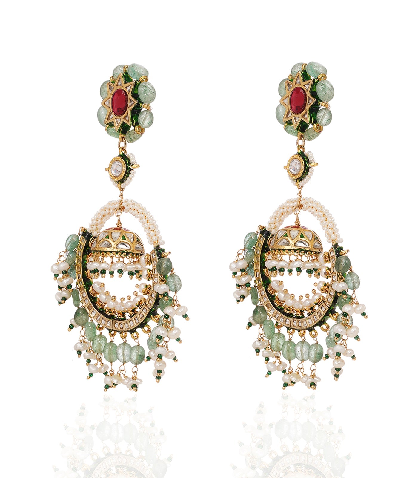 ANMARA RED & GREEN KUNDAN CHANDBALI