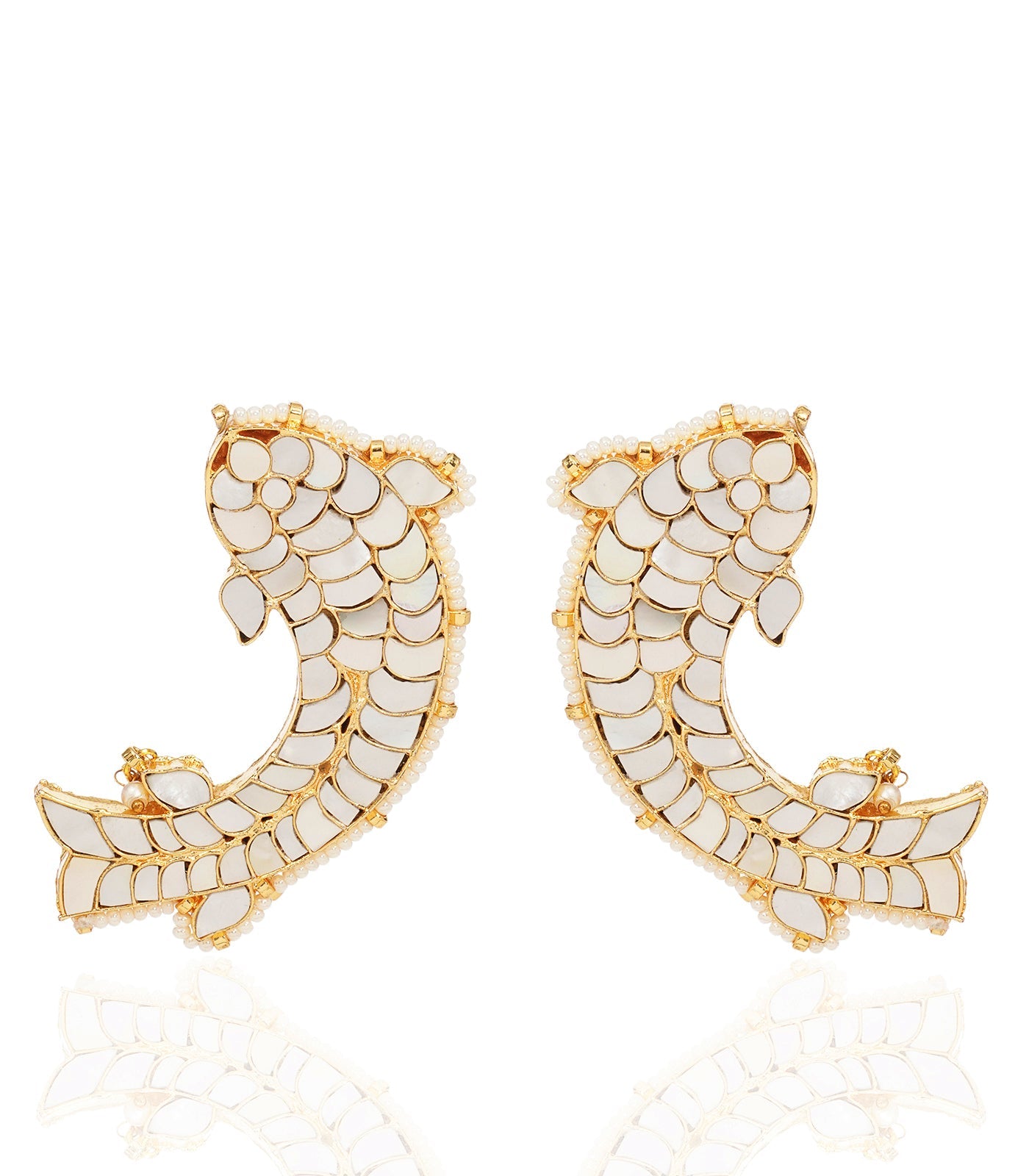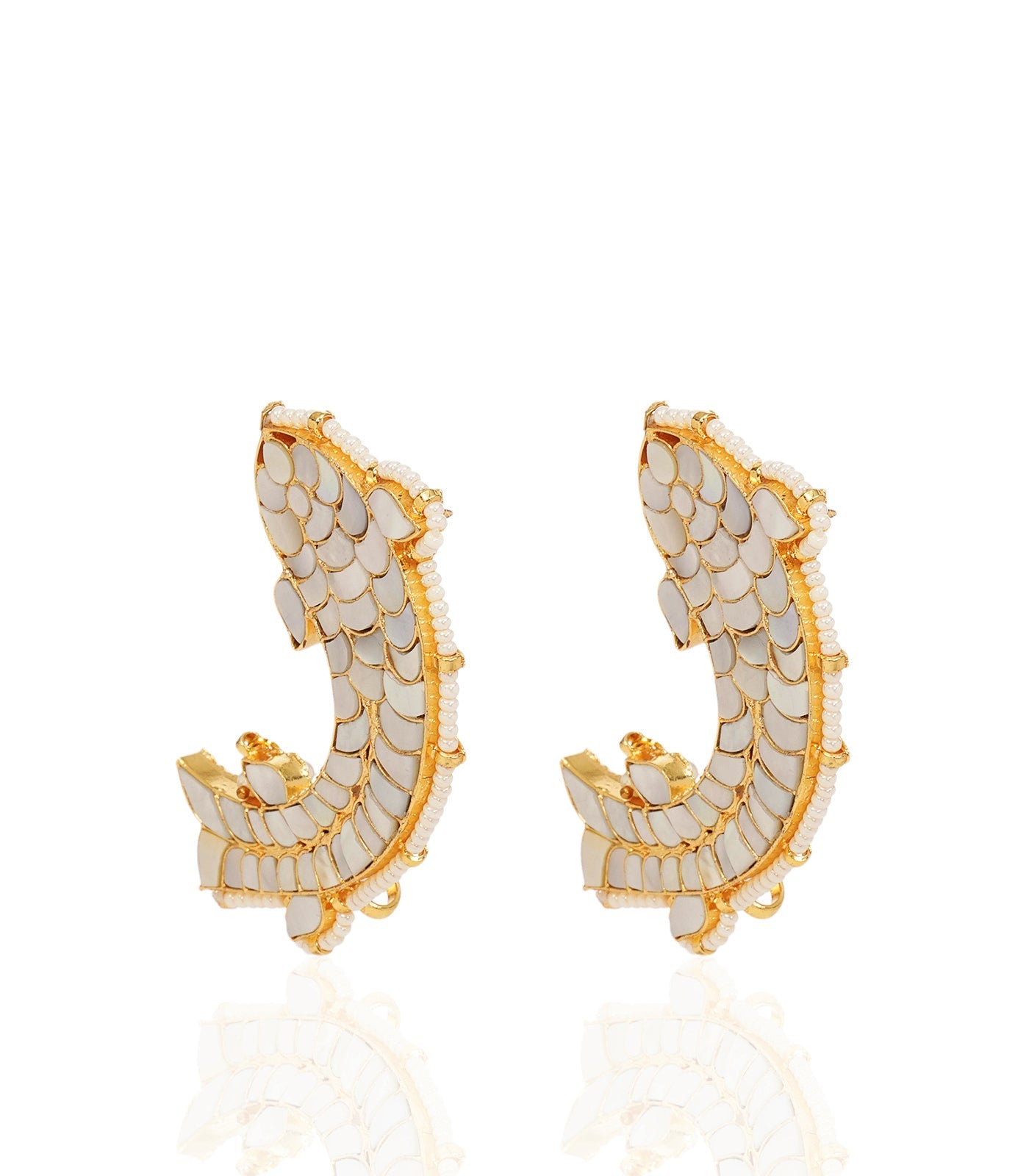 HHRIDA GOLD PLATED MOTHER OF PEARLS STATEMENT EARRINGS