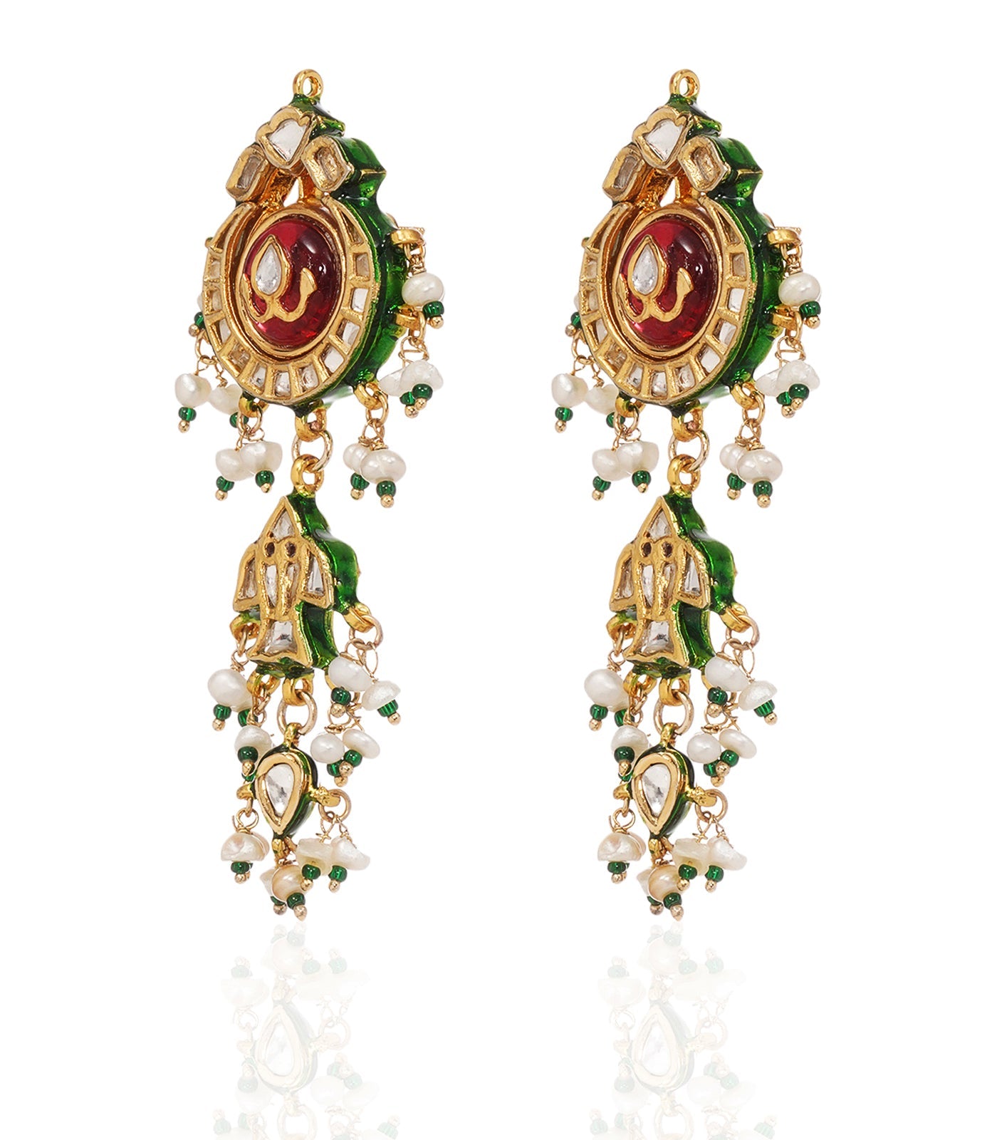 LAKSHITA RED & GREEN KUNDAN STATEMENT EARRING