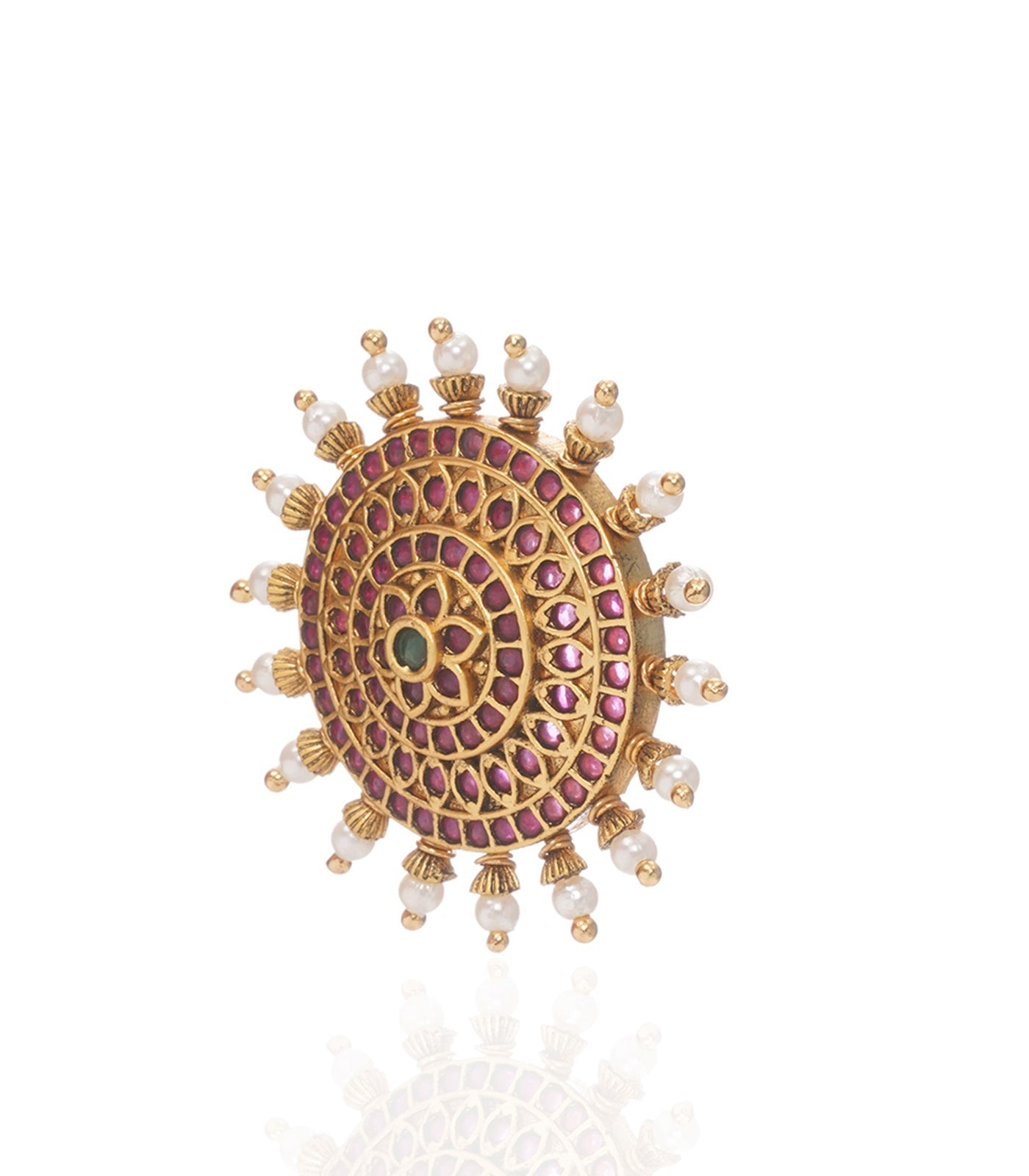 MANDALA RED & GREEN KUNDAN RING