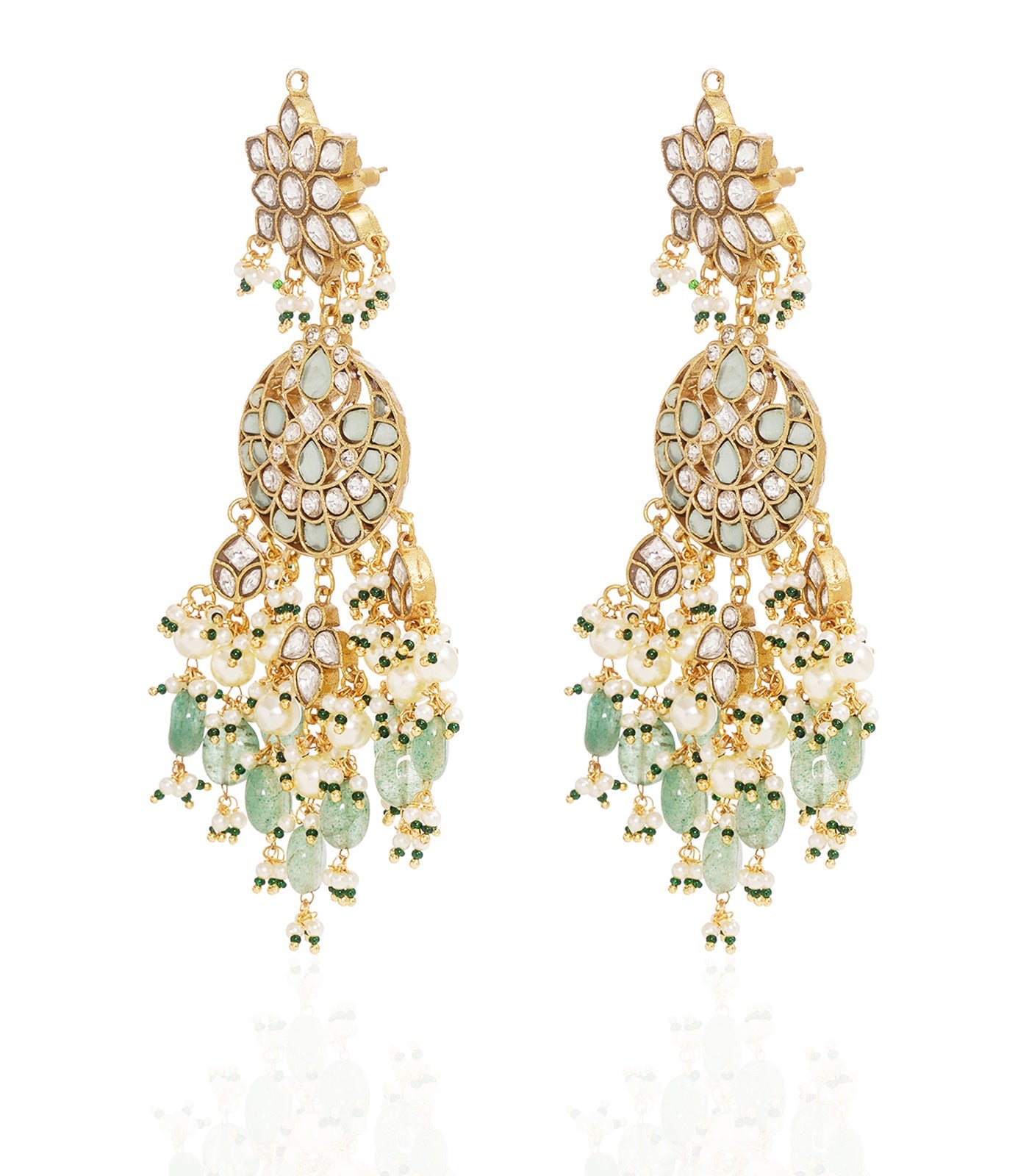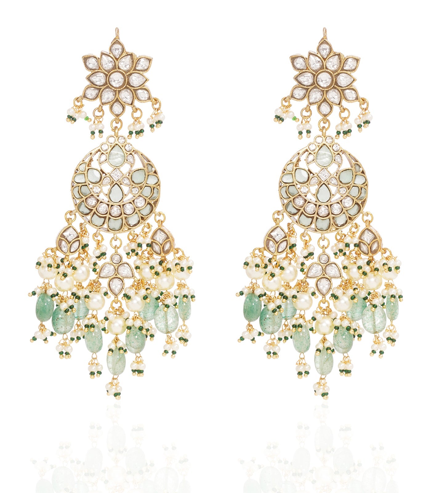 RUDRANI GREEN KUNDAN STATEMENT EARRING