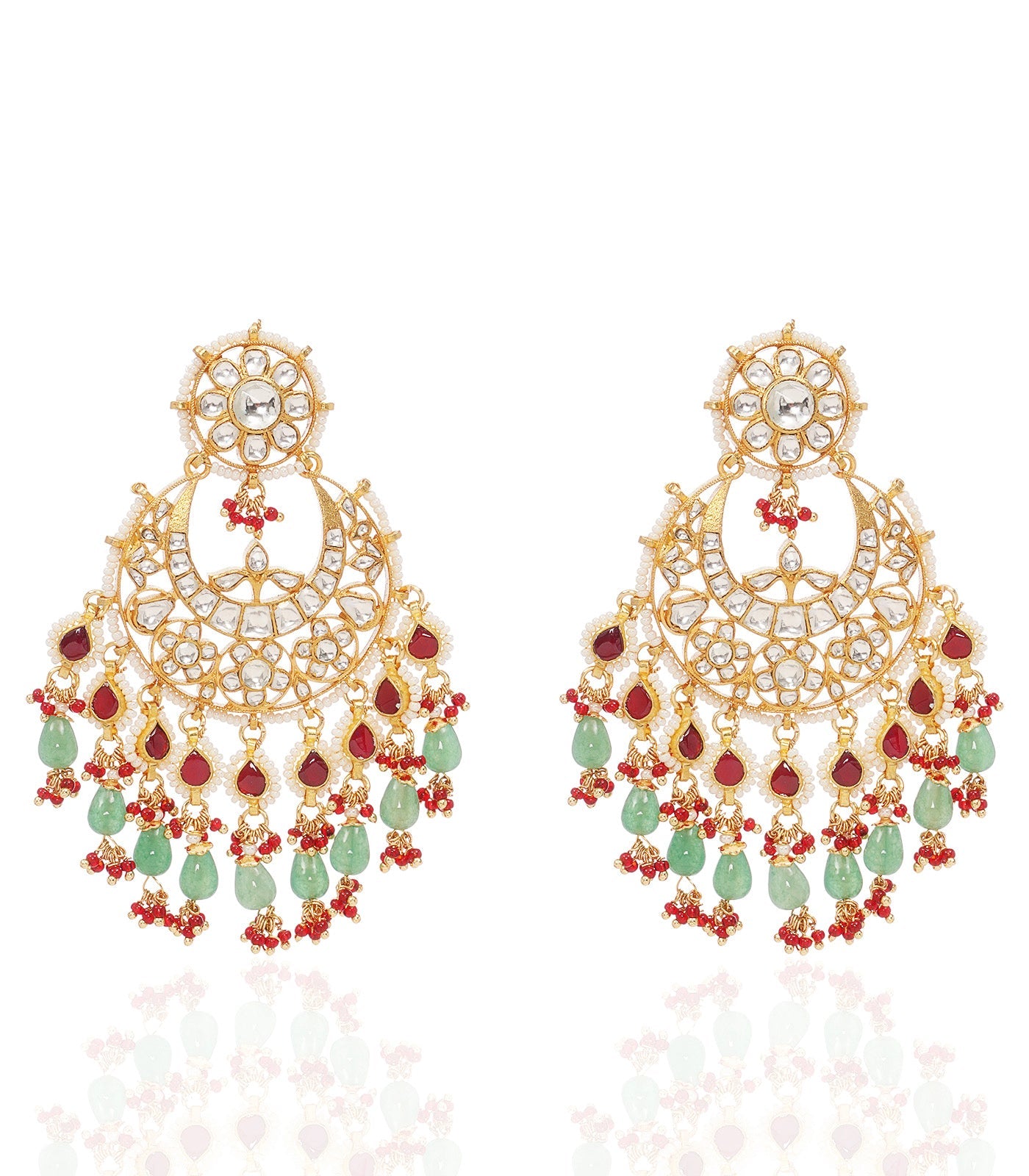 BHUVI RED & GREEN KUNDAN CHANDBALI