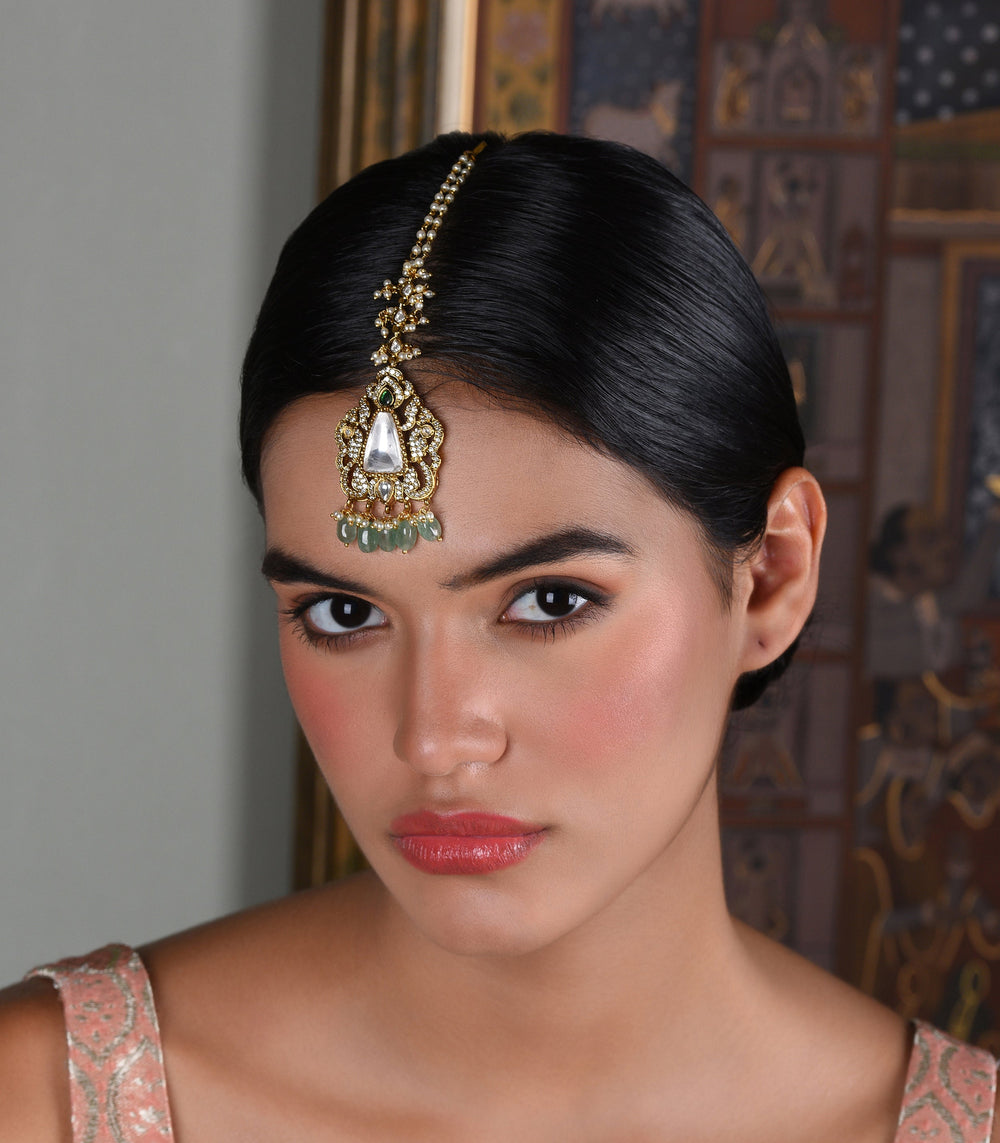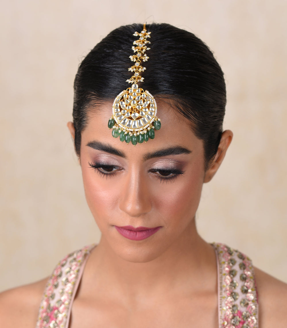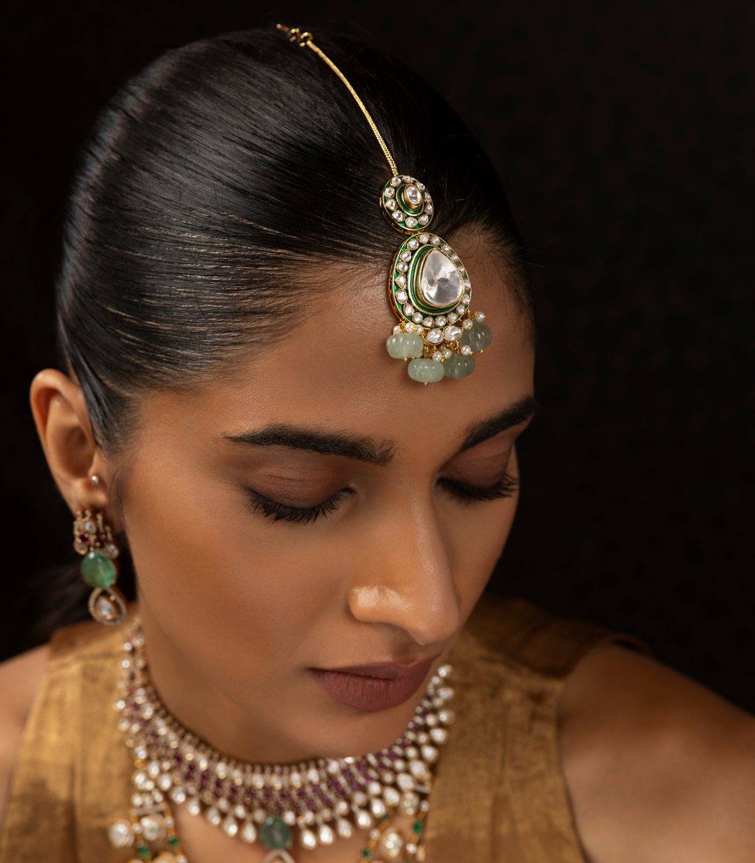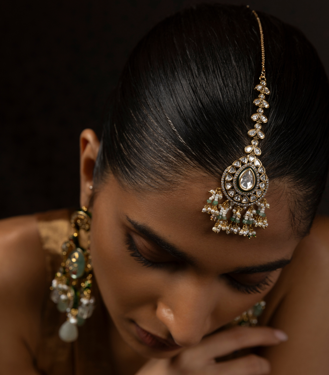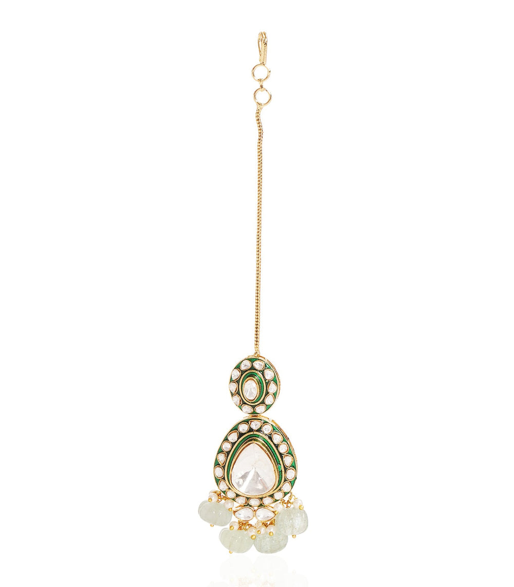 AAWANYA GREEN KUNDAN TIKA WITH GREEN ONYX DROPS