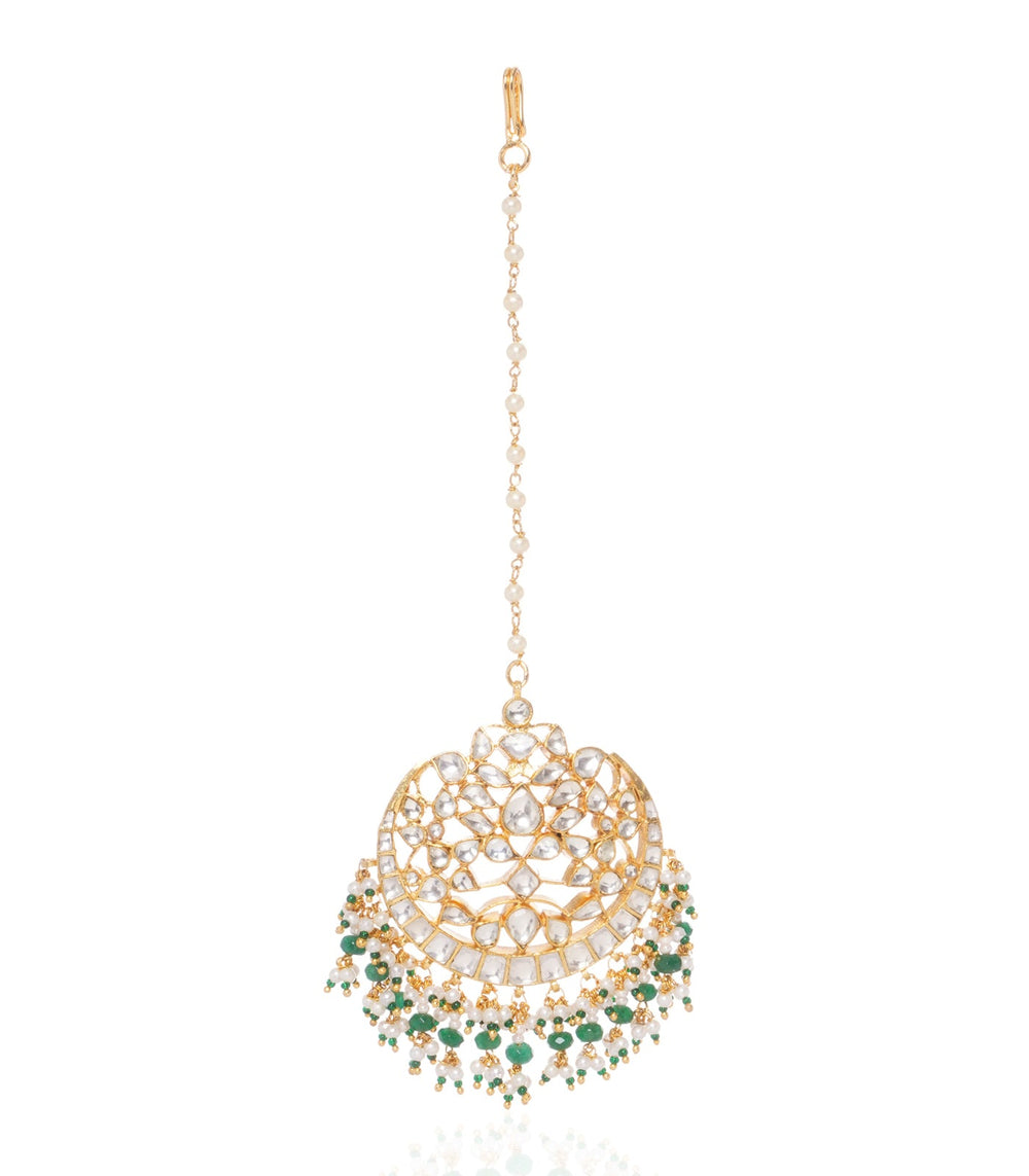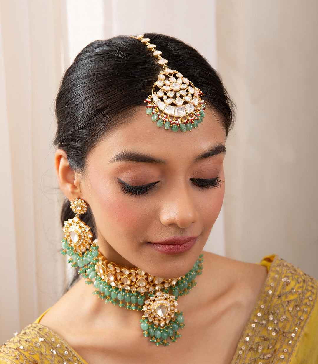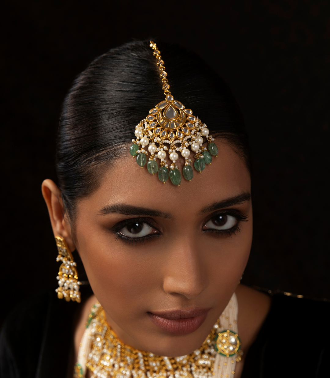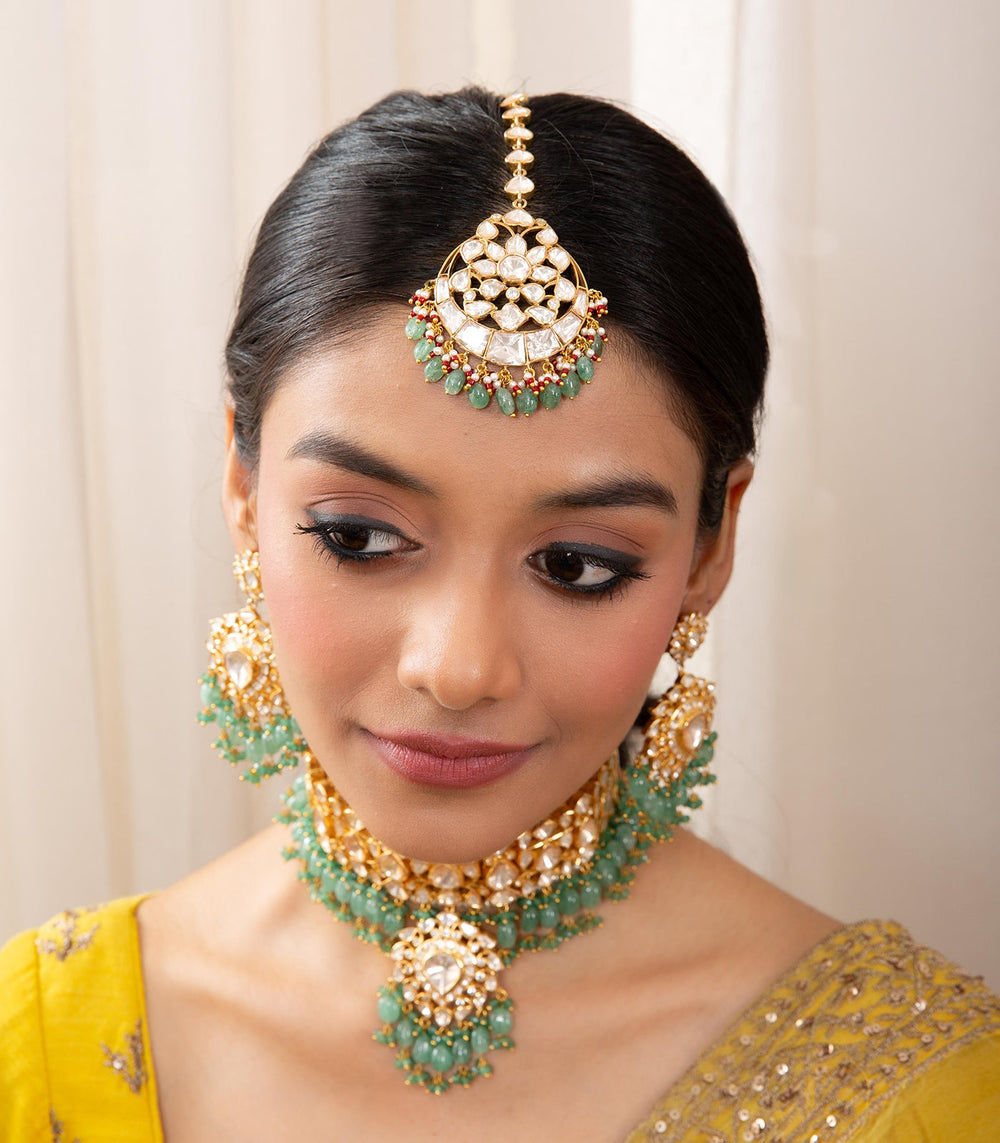 AAWANYA GREEN KUNDAN TIKA WITH GREEN ONYX DROPS
