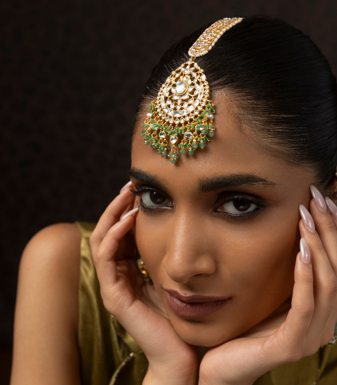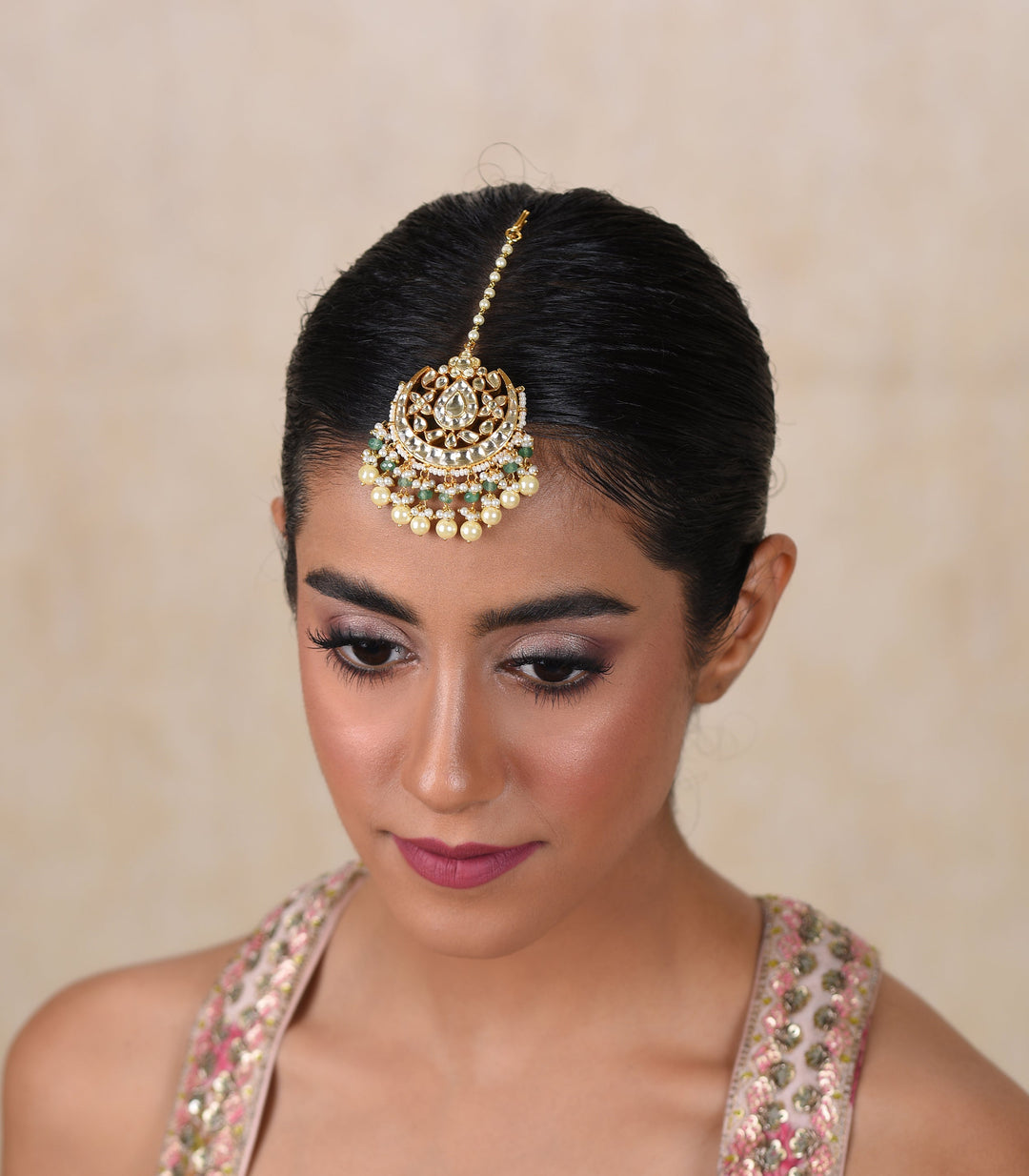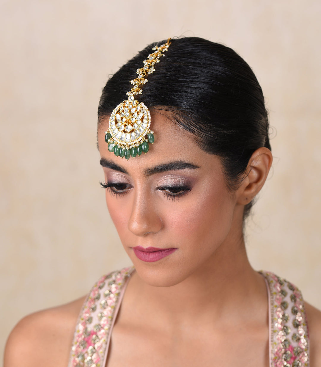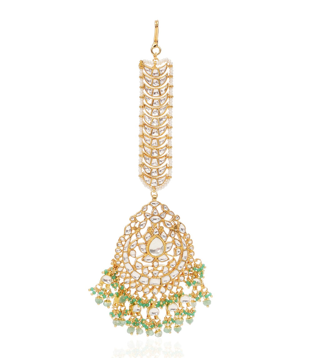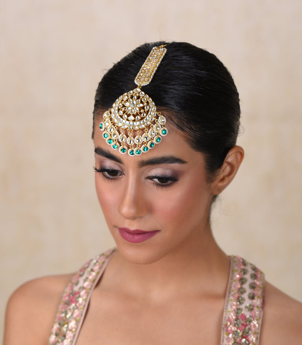 AAWANYA GREEN KUNDAN TIKA WITH GREEN ONYX DROPS