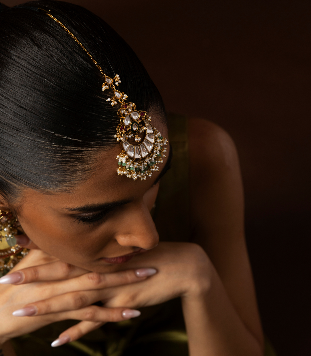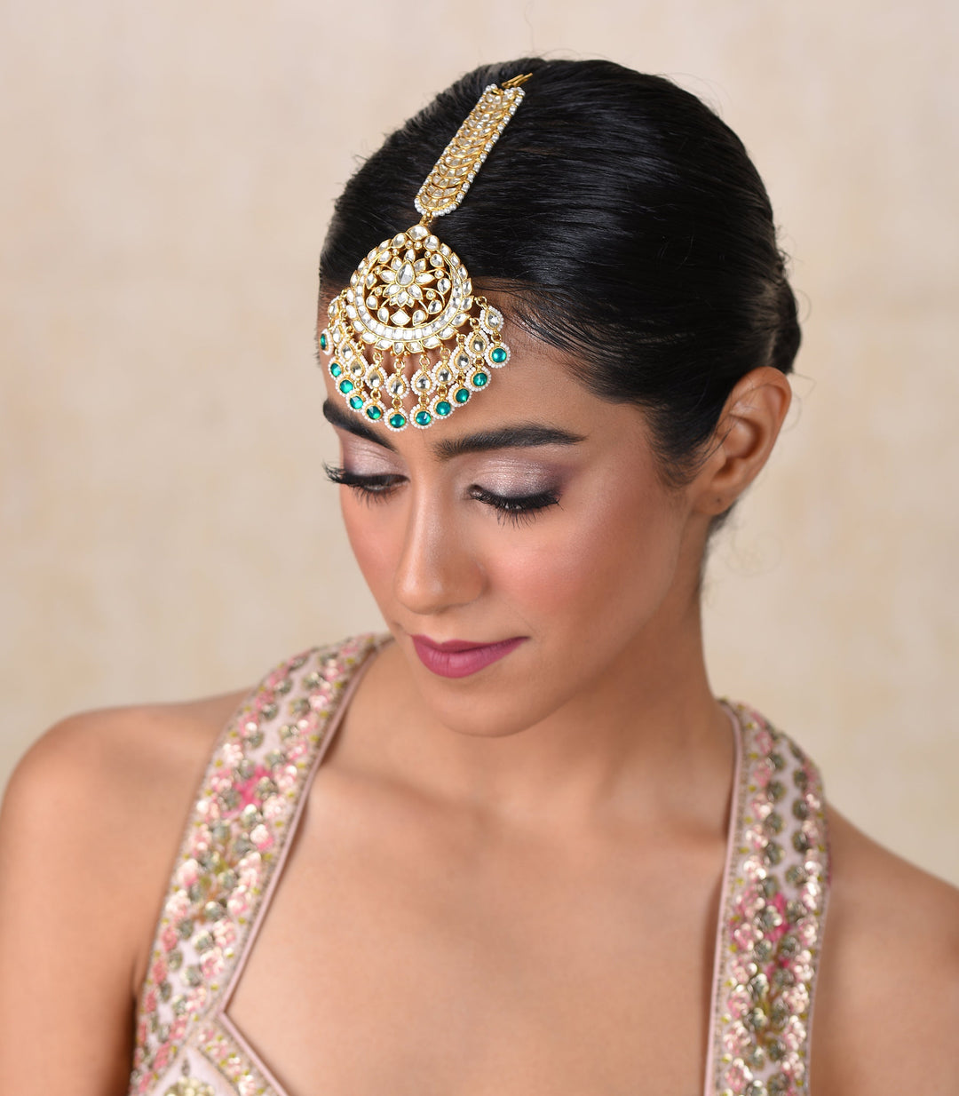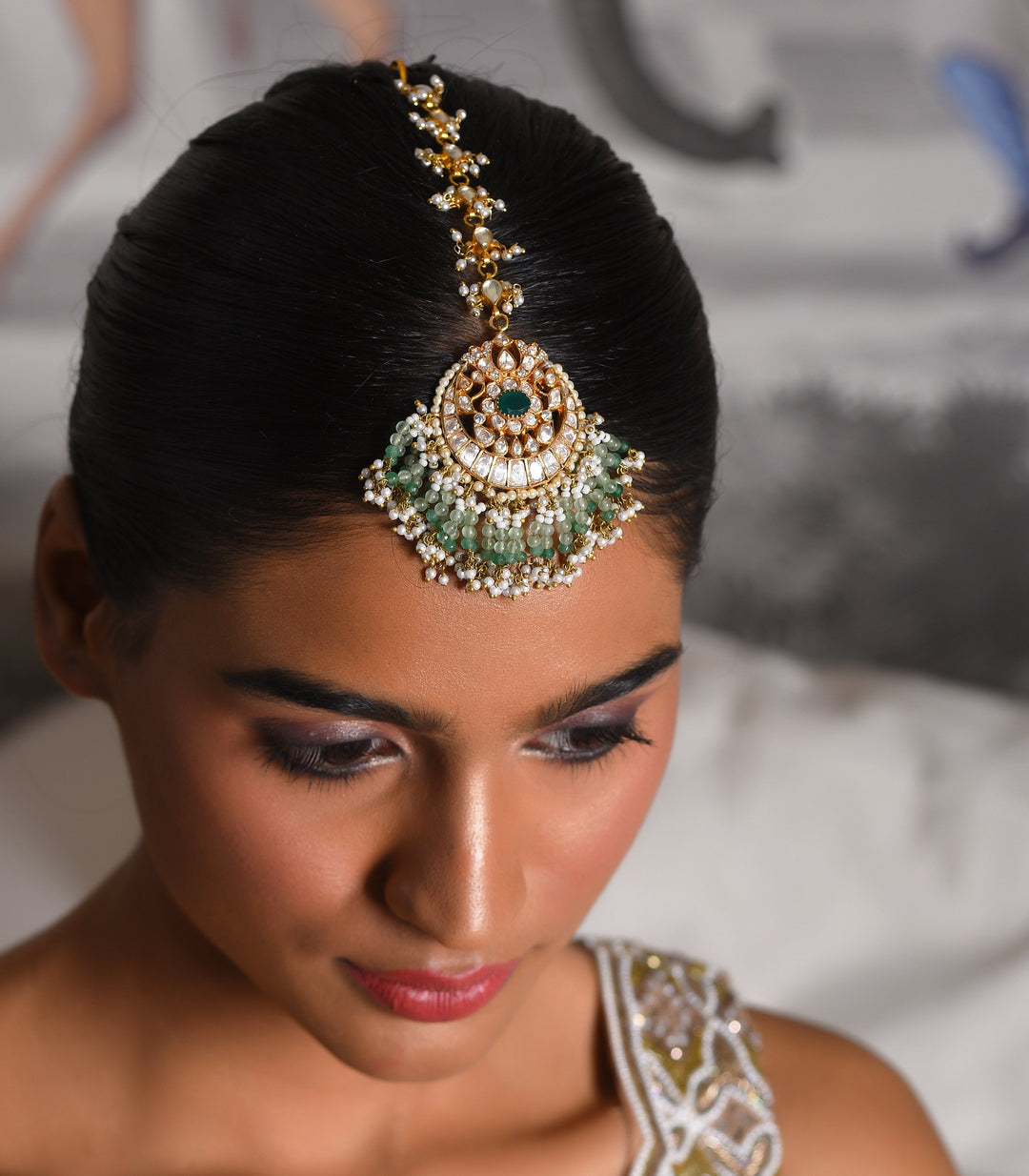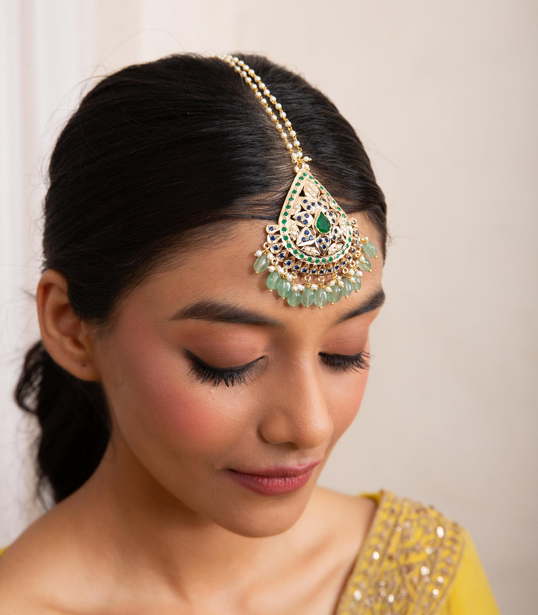 AAWANYA GREEN KUNDAN TIKA WITH GREEN ONYX DROPS