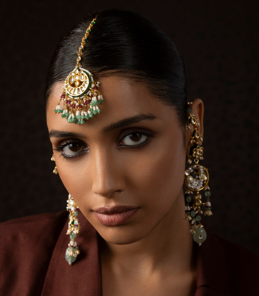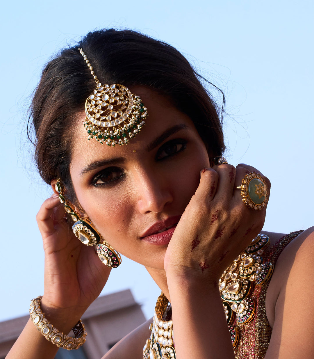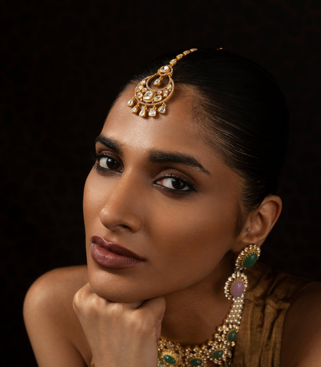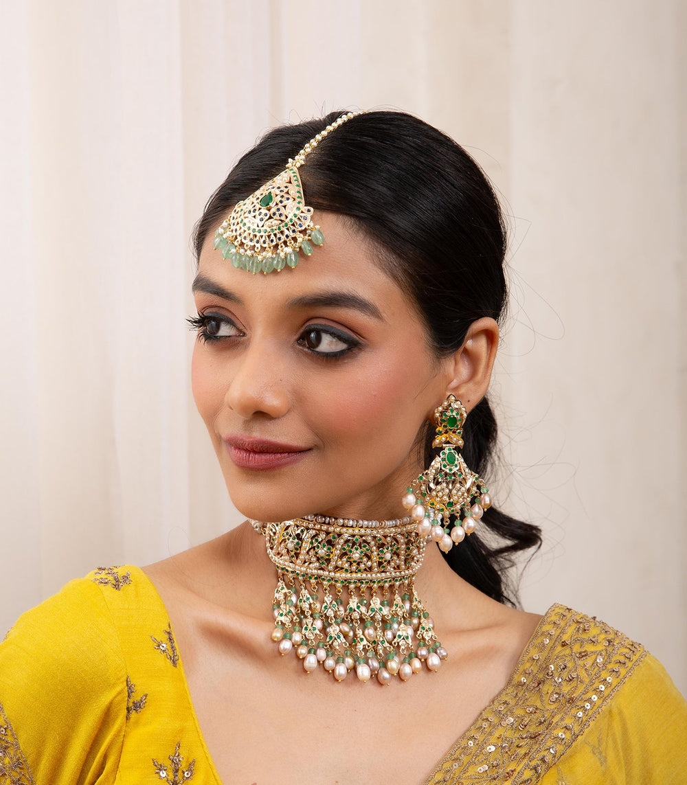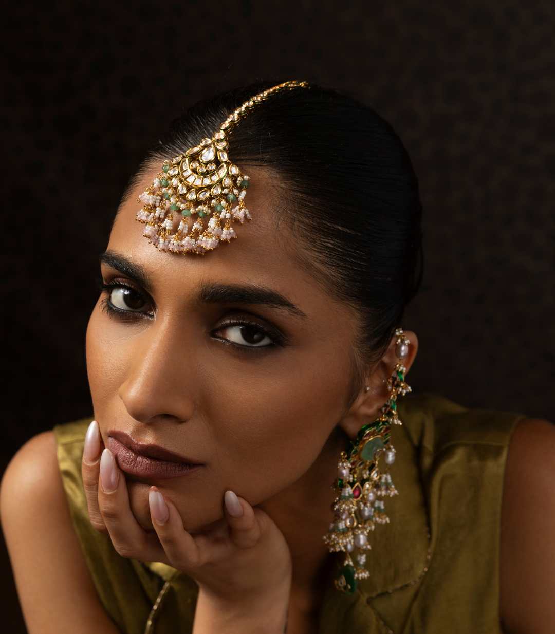 AAWANYA GREEN KUNDAN TIKA WITH GREEN ONYX DROPS