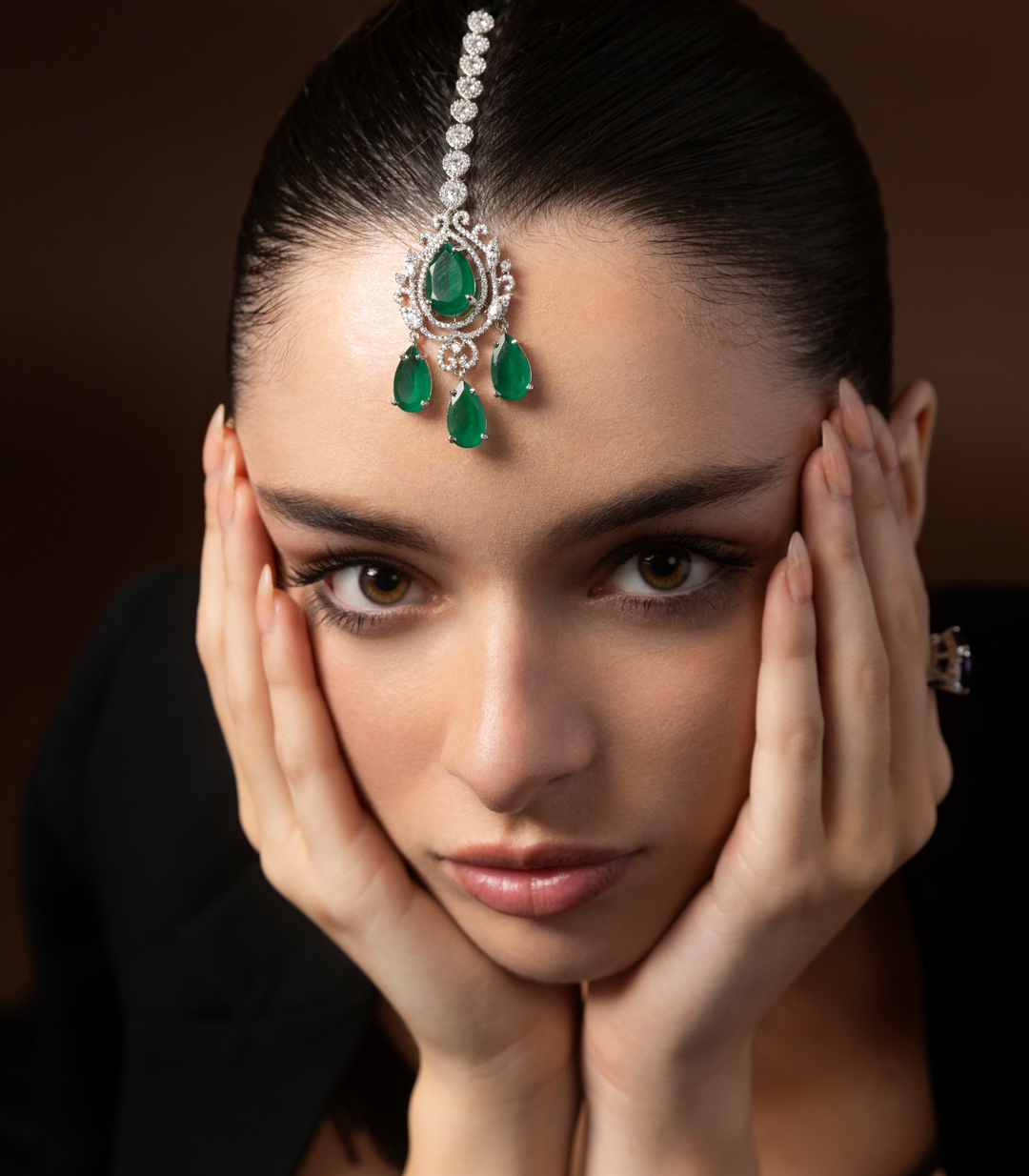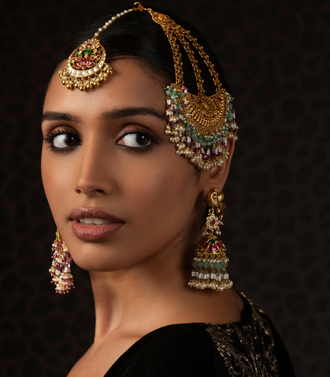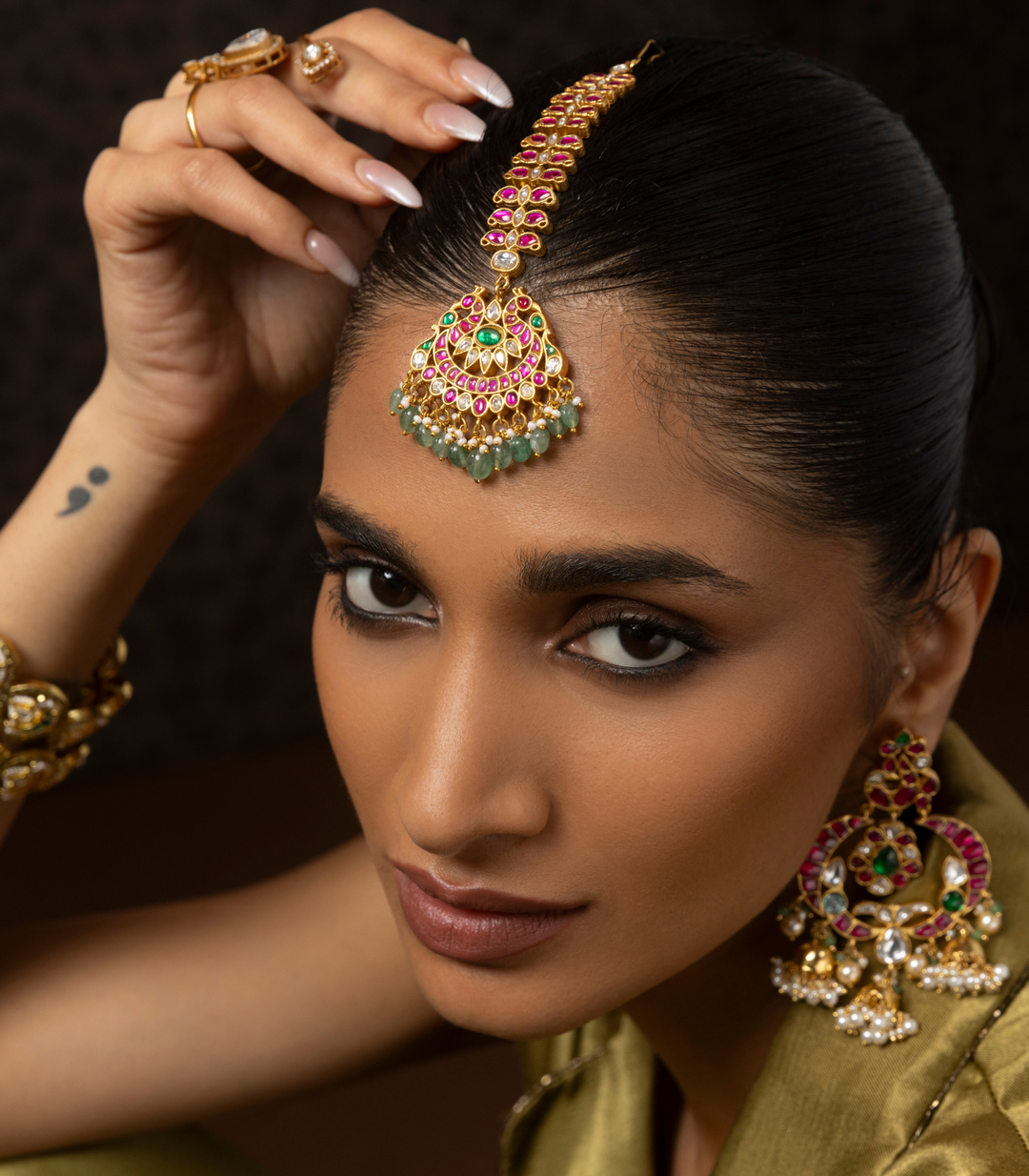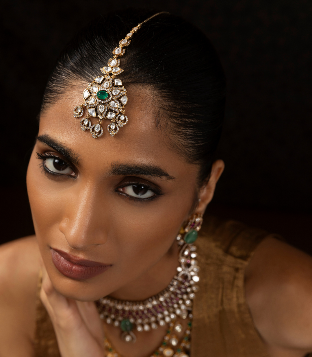 AAWANYA GREEN KUNDAN TIKA WITH GREEN ONYX DROPS