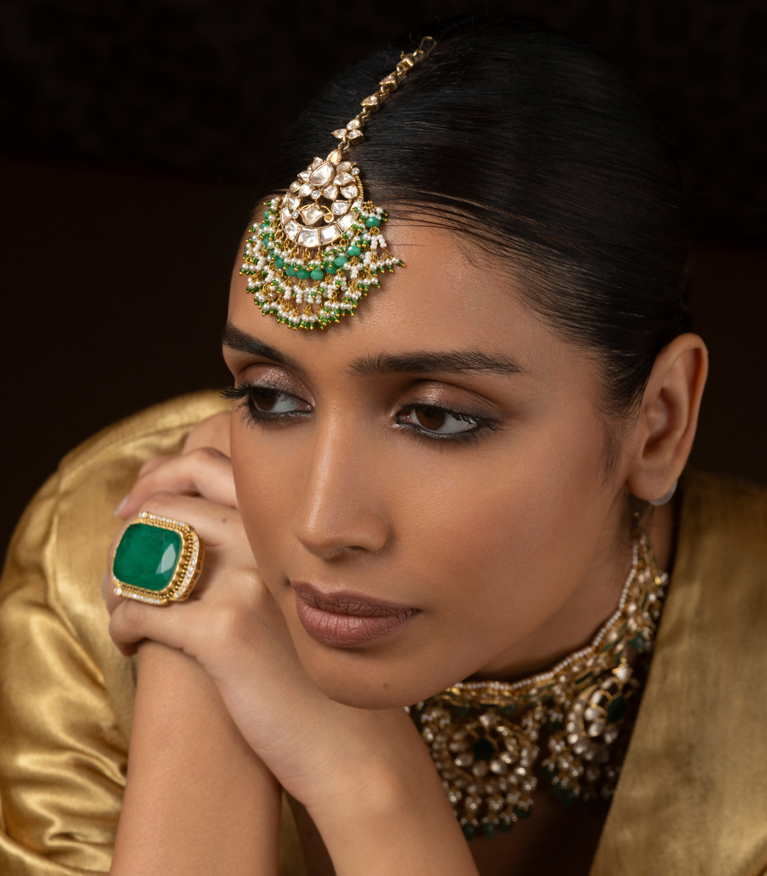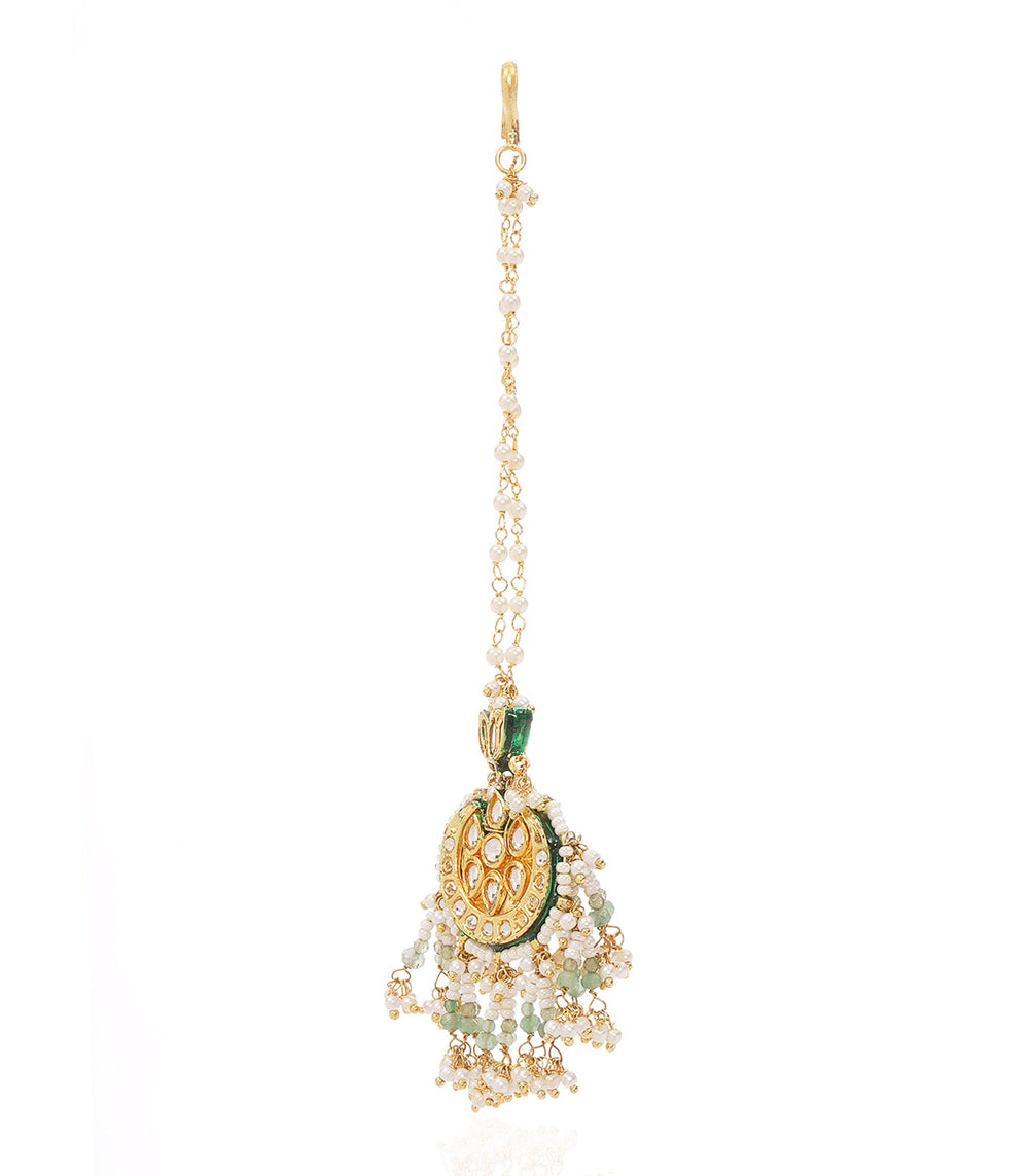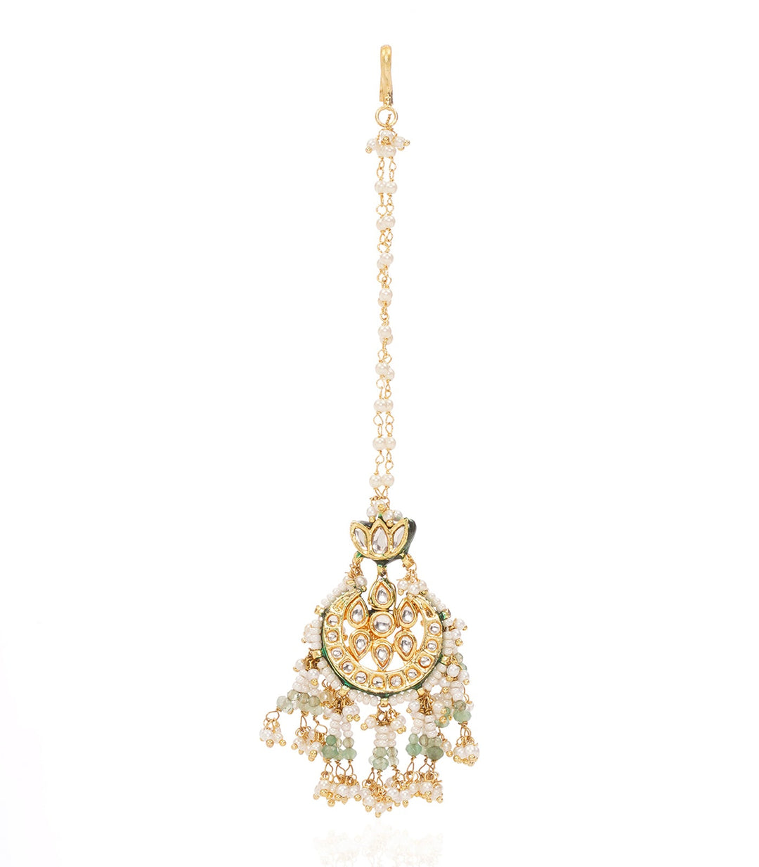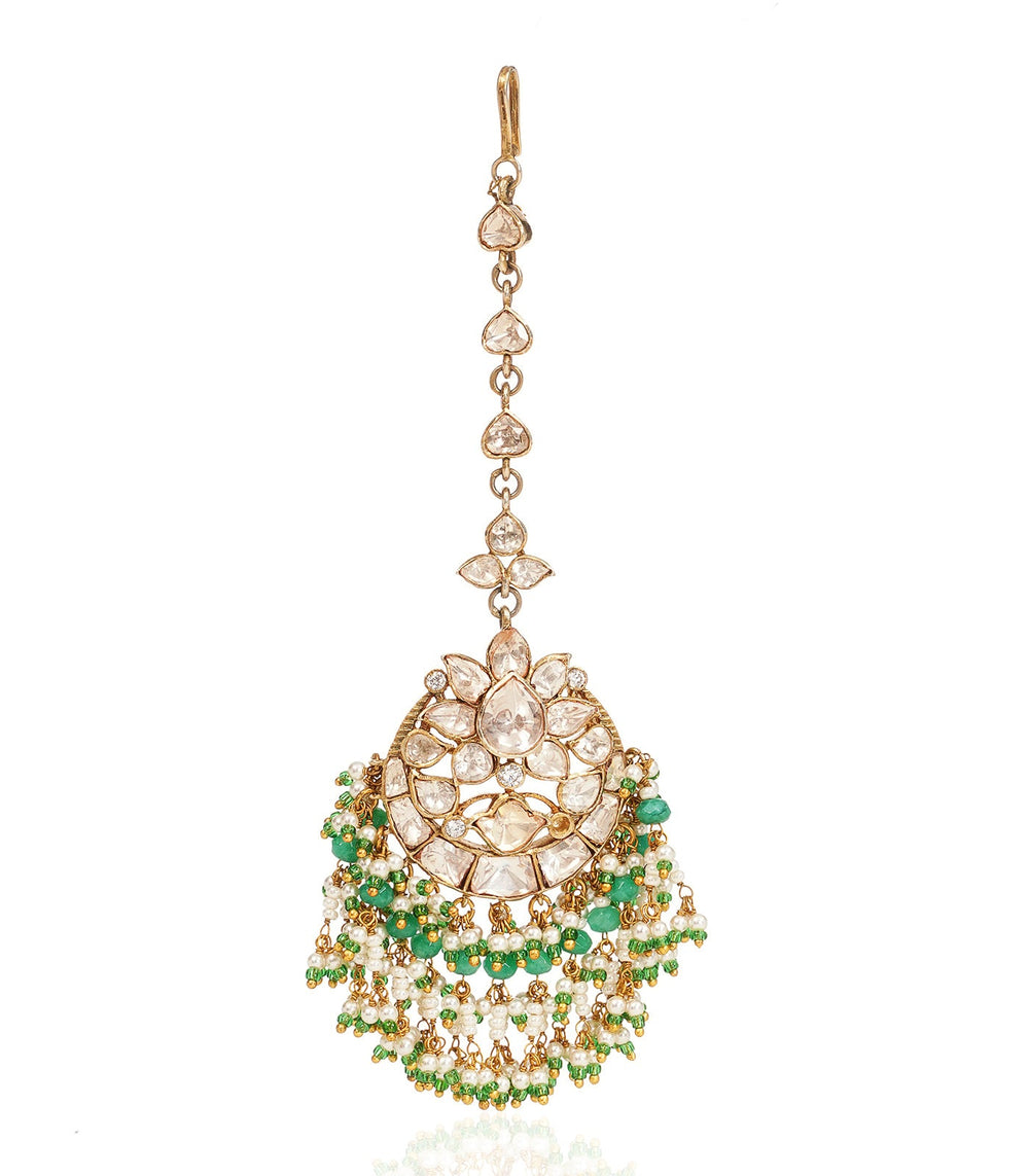 CHAARVI ANTIQUE FINISH GREEN POLKI TIKA