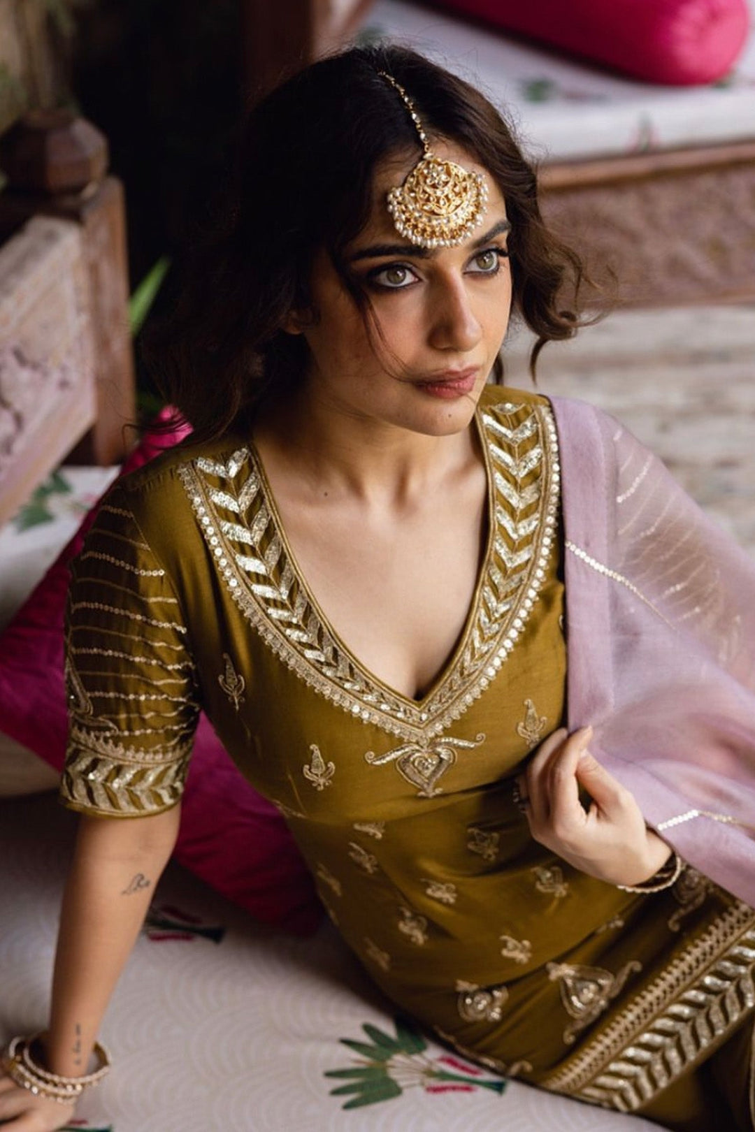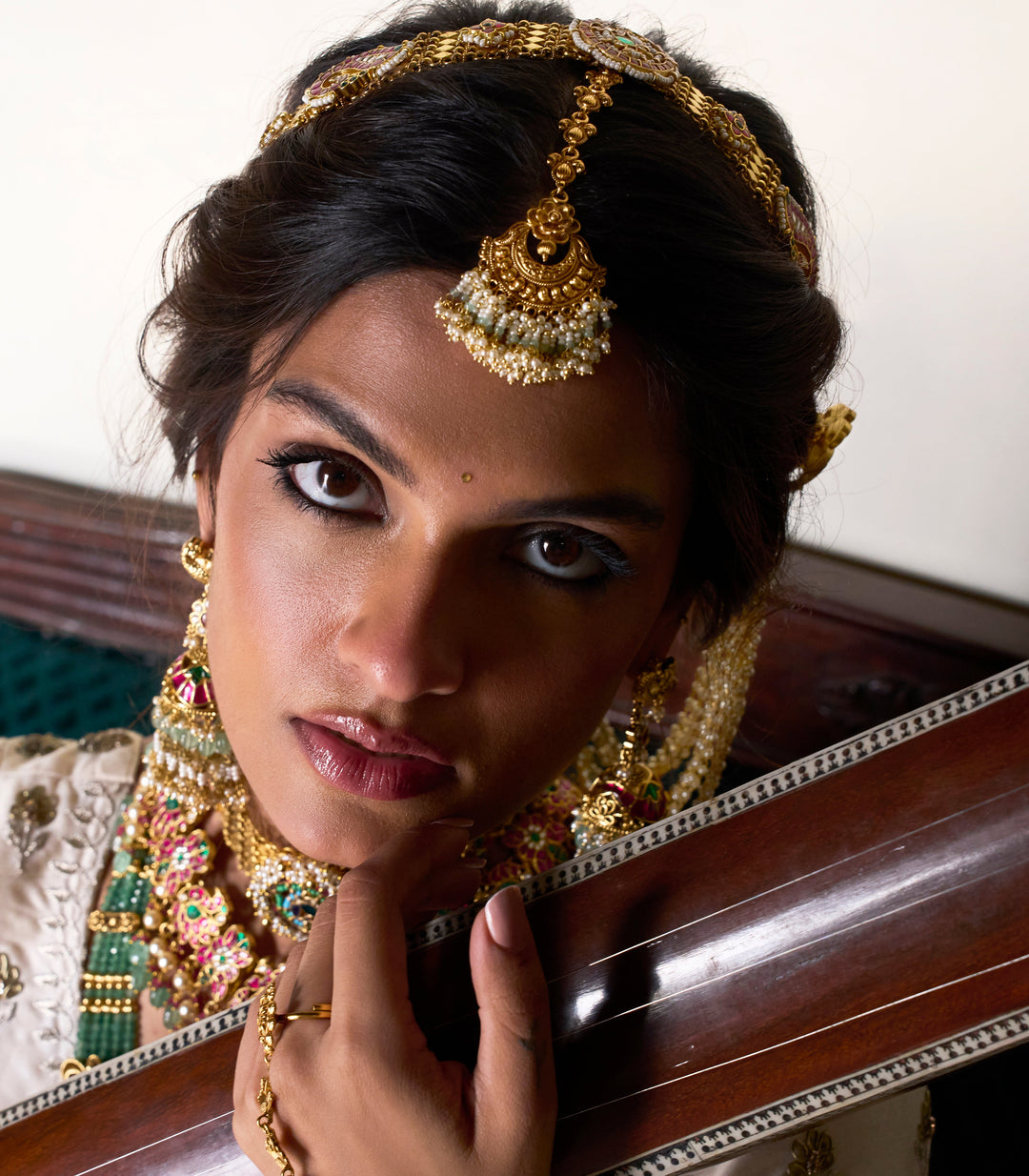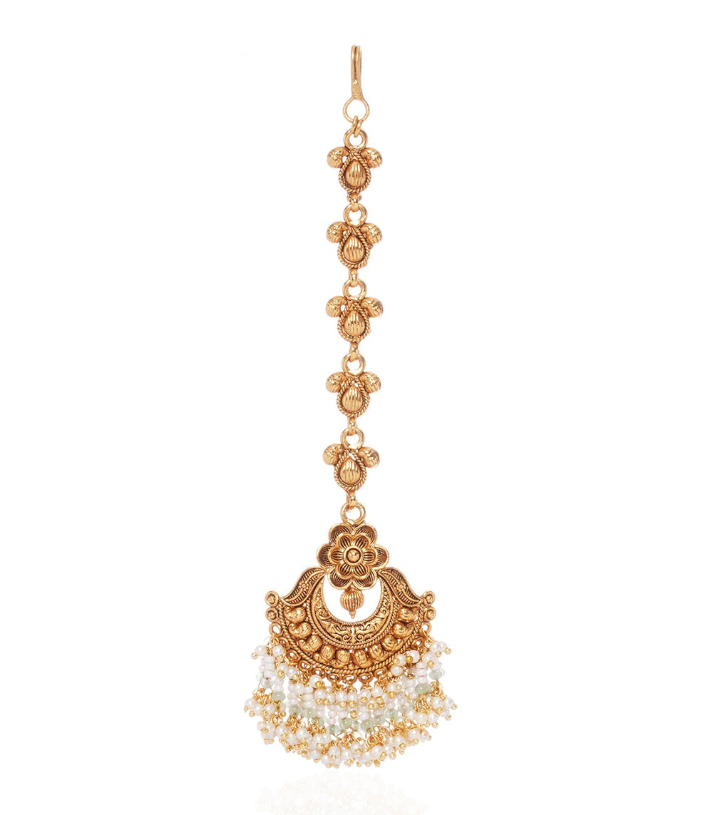 CHAARVI ANTIQUE FINISH GREEN POLKI TIKA