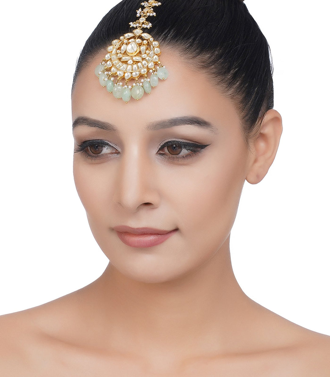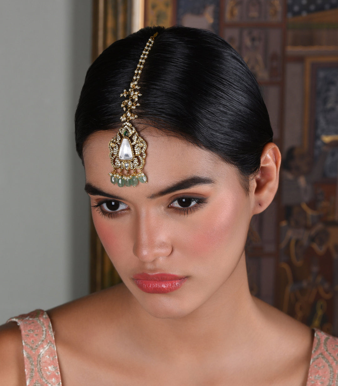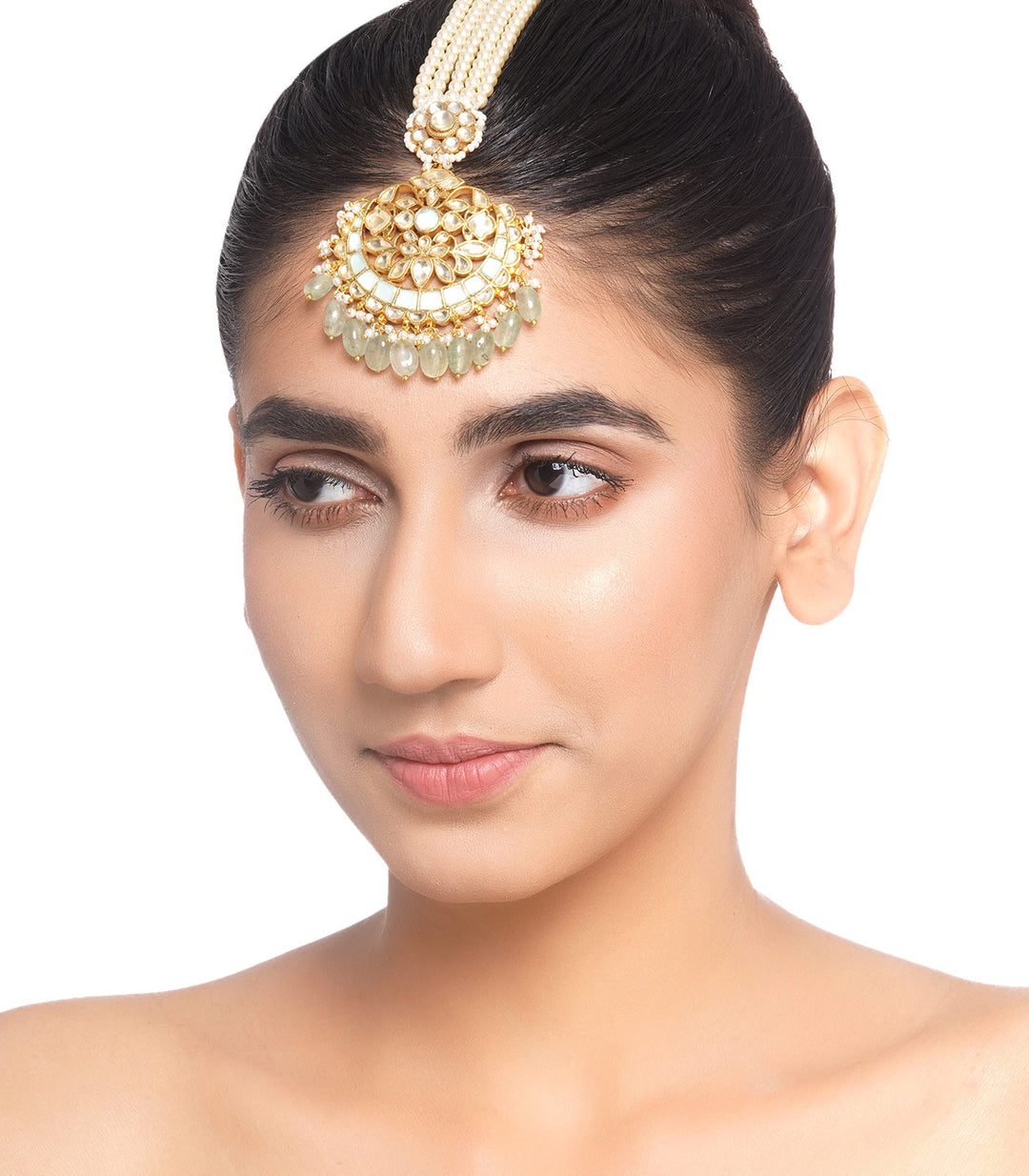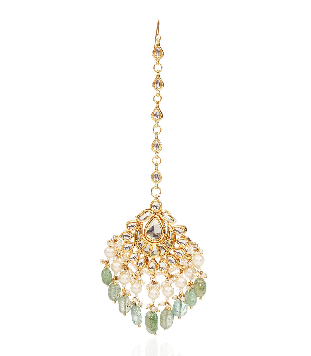 MANISHA GOLD PLATED MINT GREEN KUNDAN TIKA WITH MINT DROPS