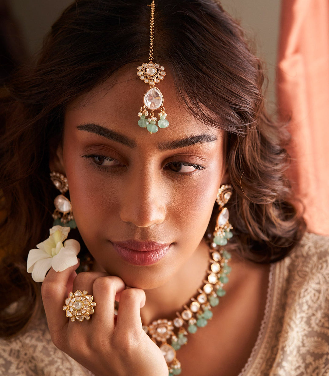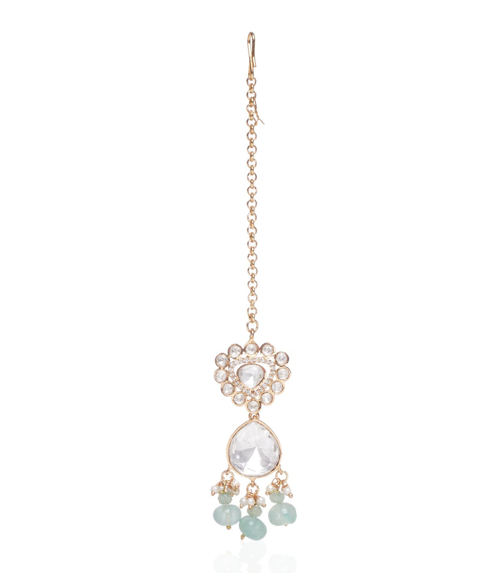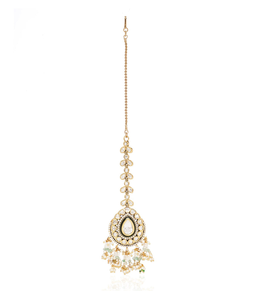 MANISHA GOLD PLATED MINT GREEN KUNDAN TIKA WITH MINT DROPS