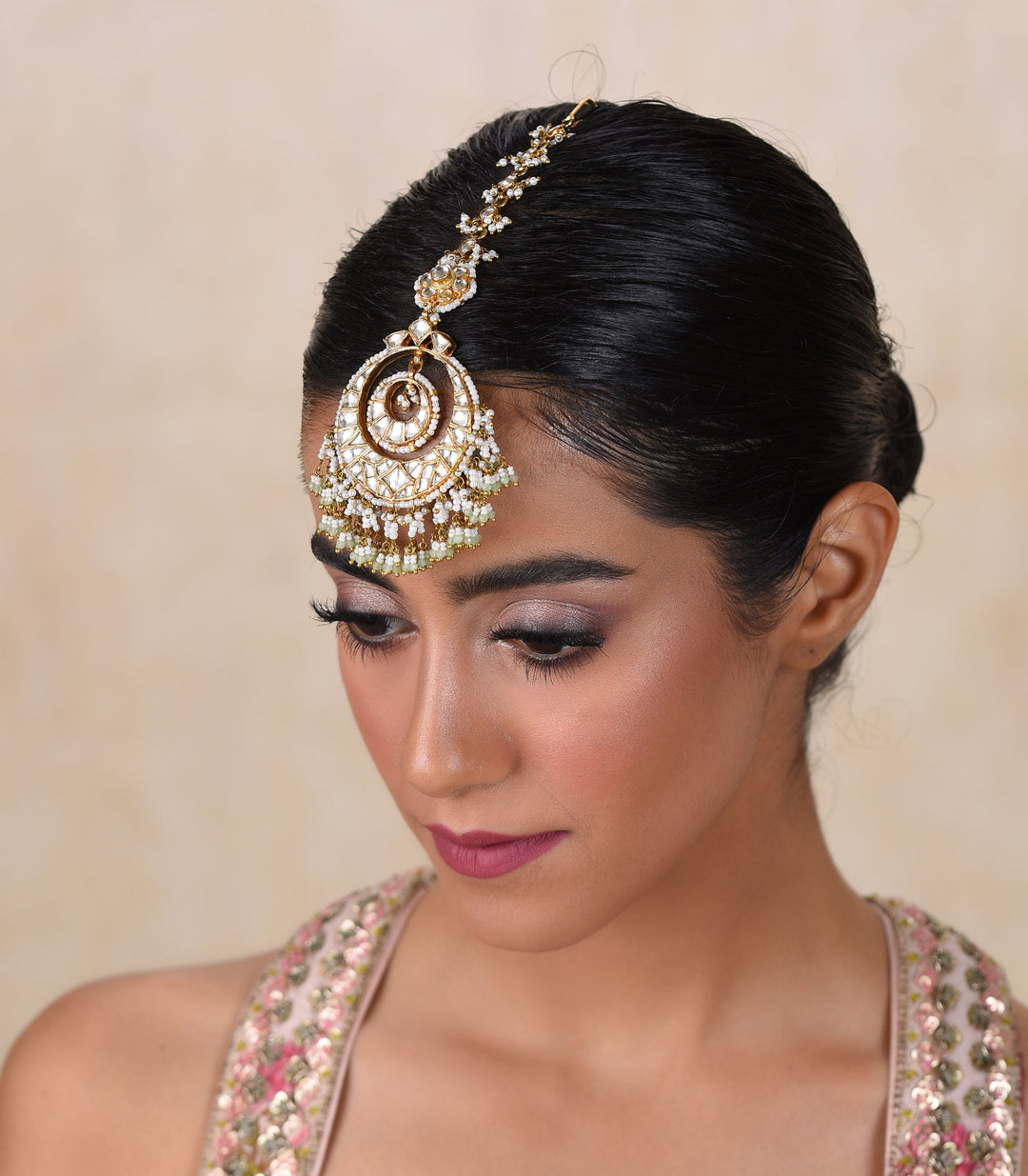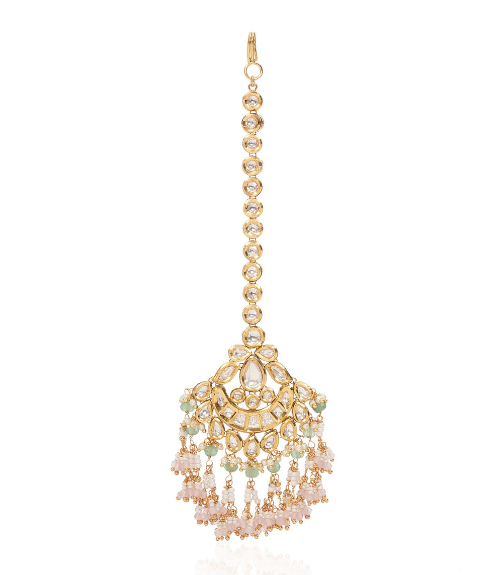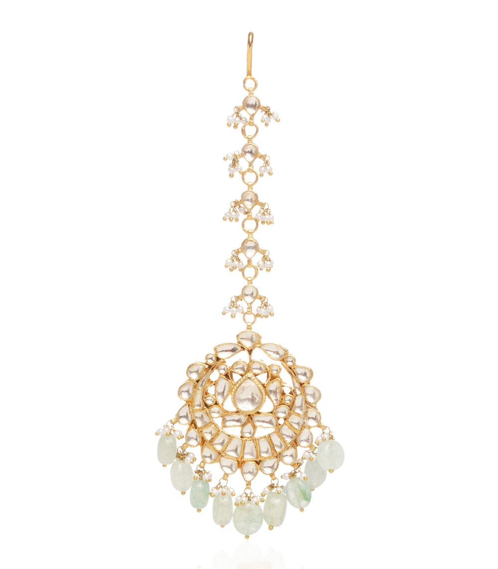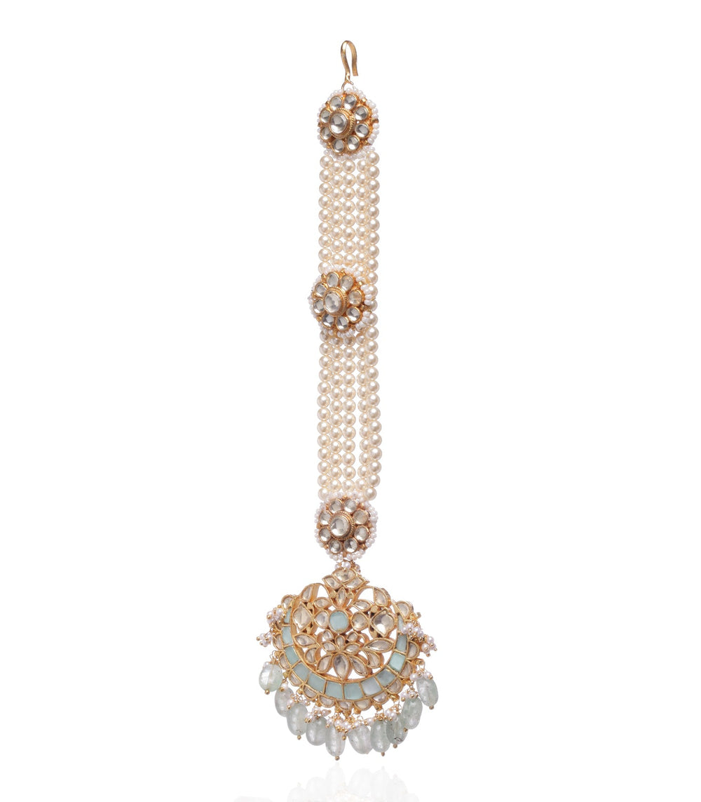 MANISHA GOLD PLATED MINT GREEN KUNDAN TIKA WITH MINT DROPS