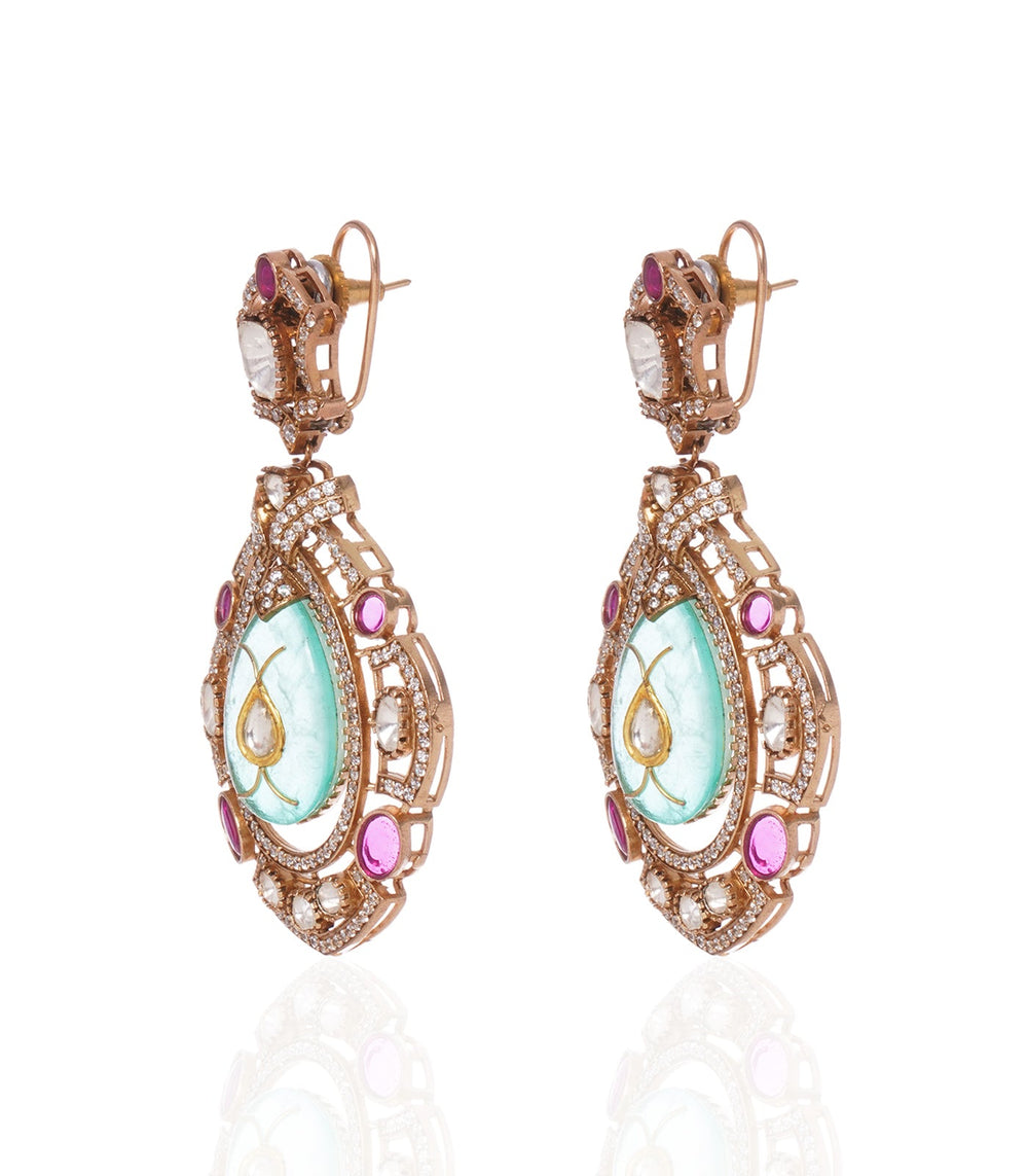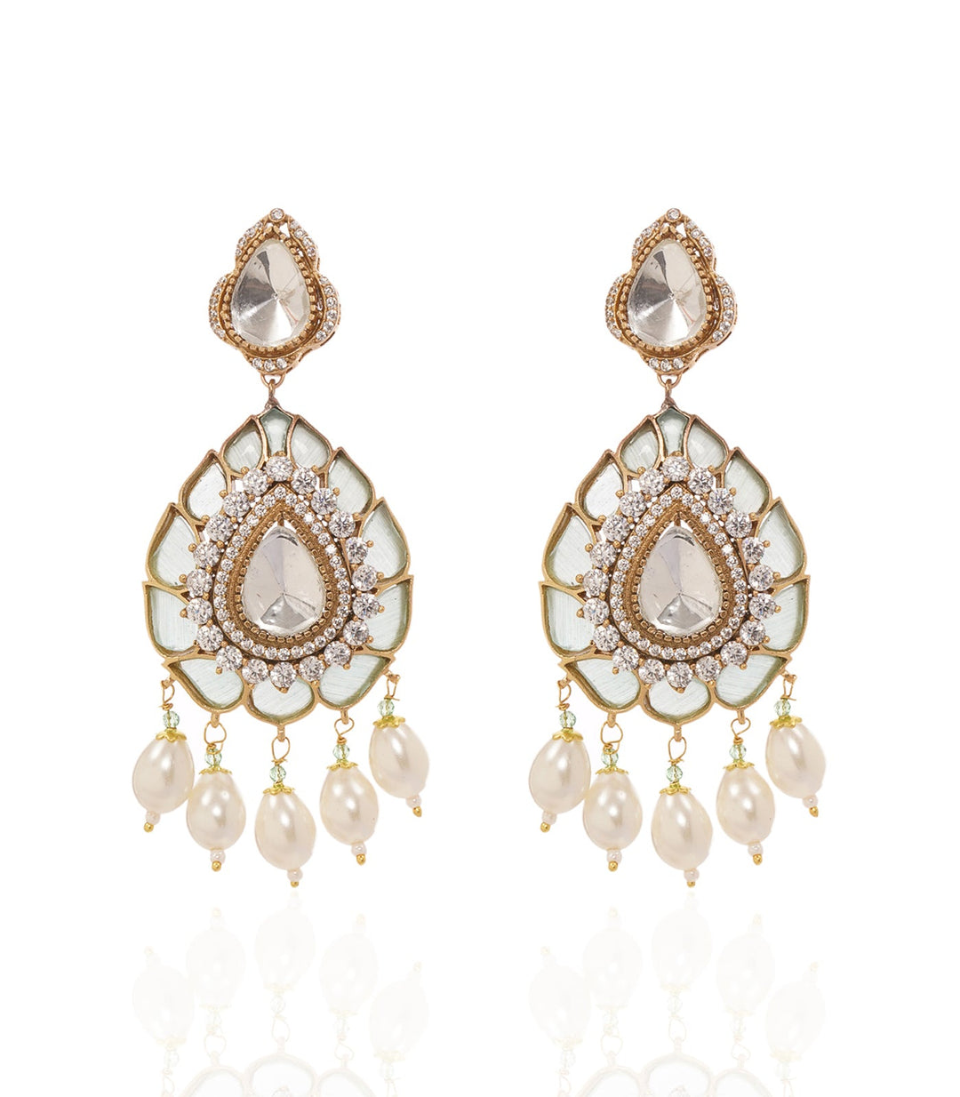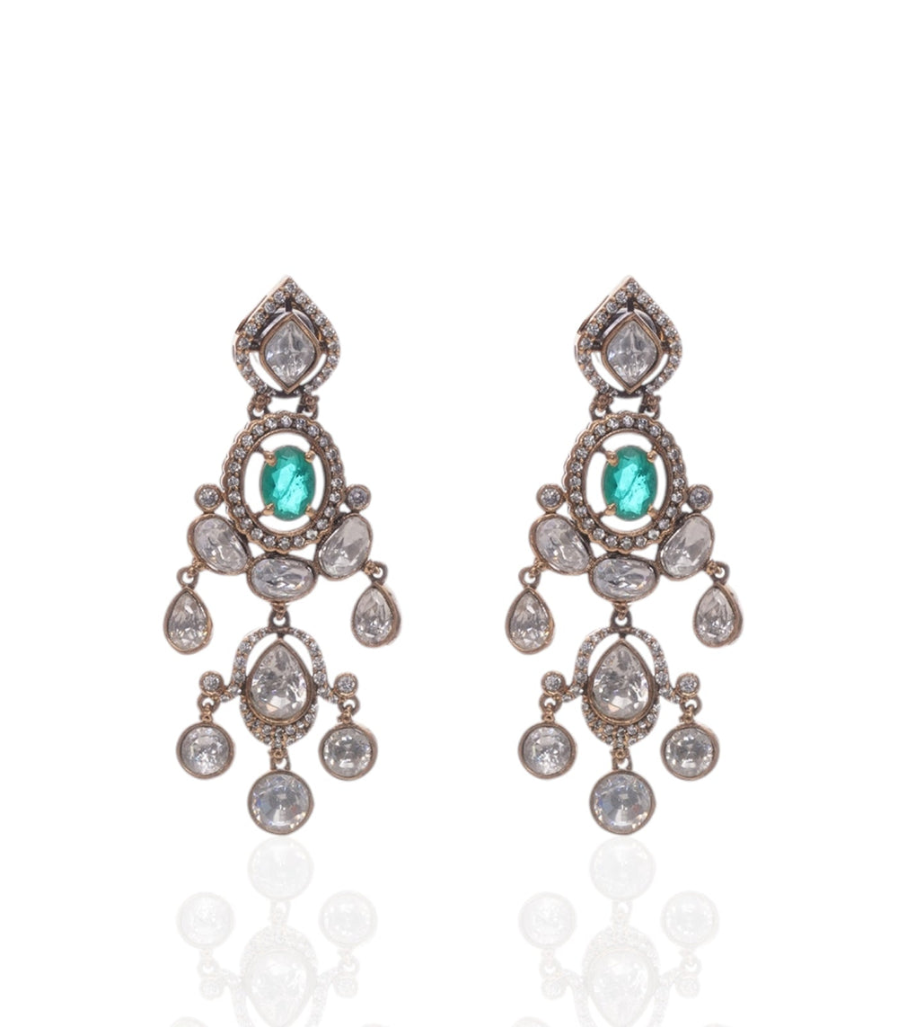 HARSHITA ANTIQUE FINISH MINT POLKI EARRING