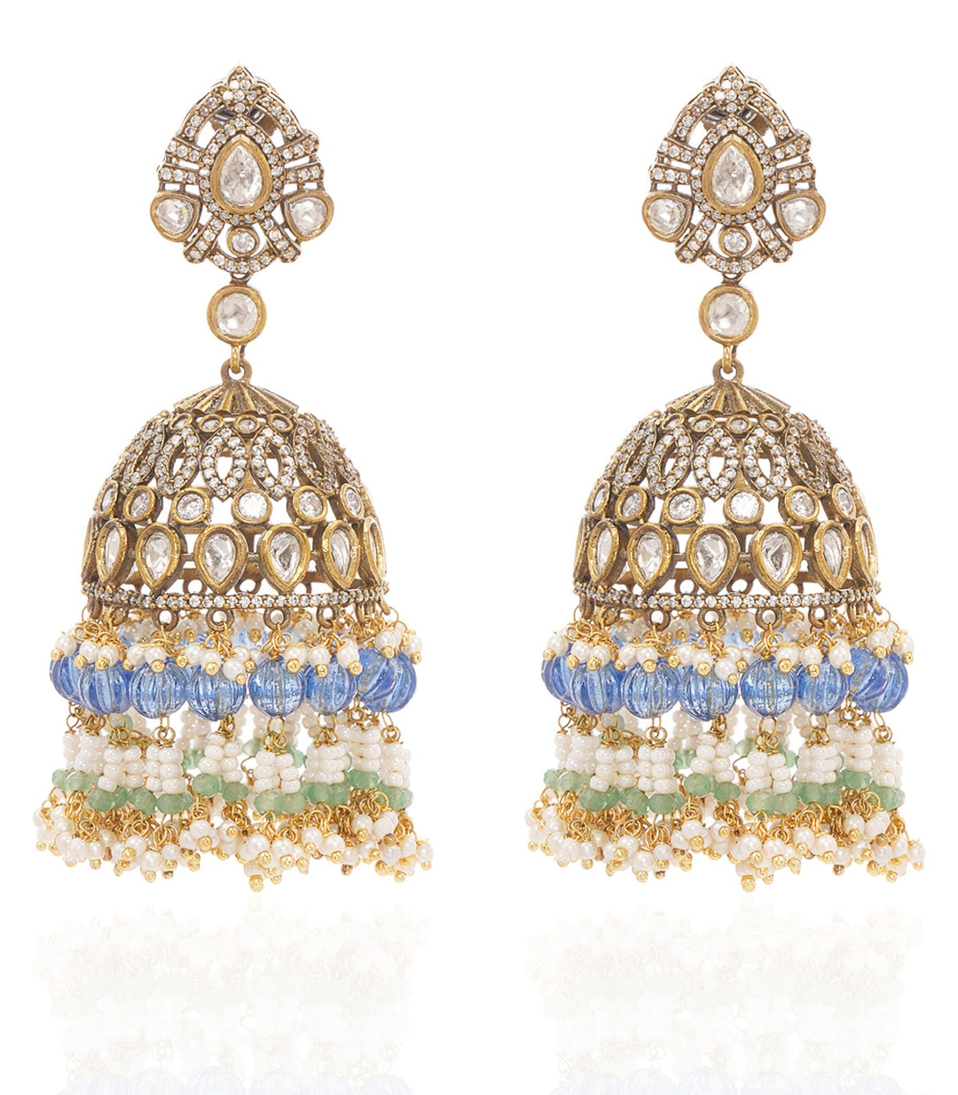 INDU ANTIQUE FINISH KUNDAN STATEMENT EARRING