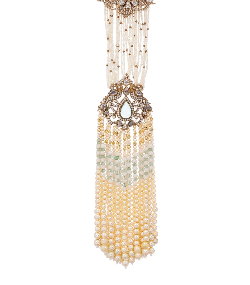 DHIMAHI ANTIQUE FINISH WHITE PEARL NECKLACE SET
