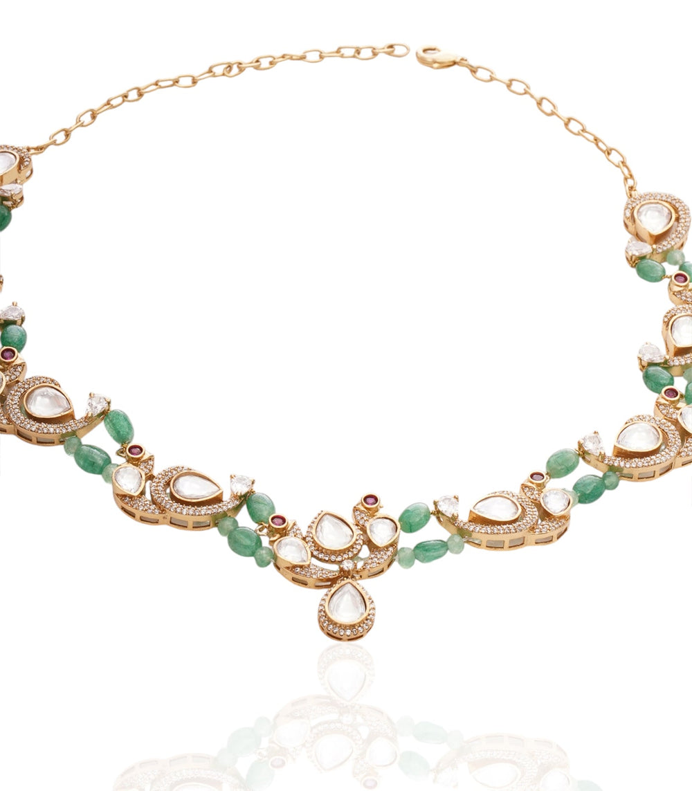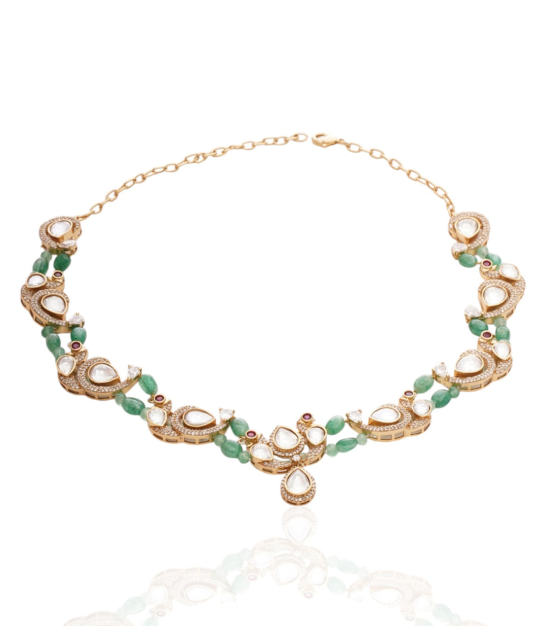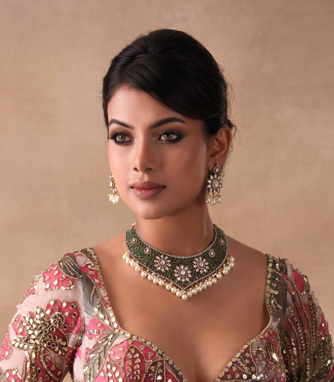 TANISHKA GREEN POLKI NECKLACE SET WITH PEARLS