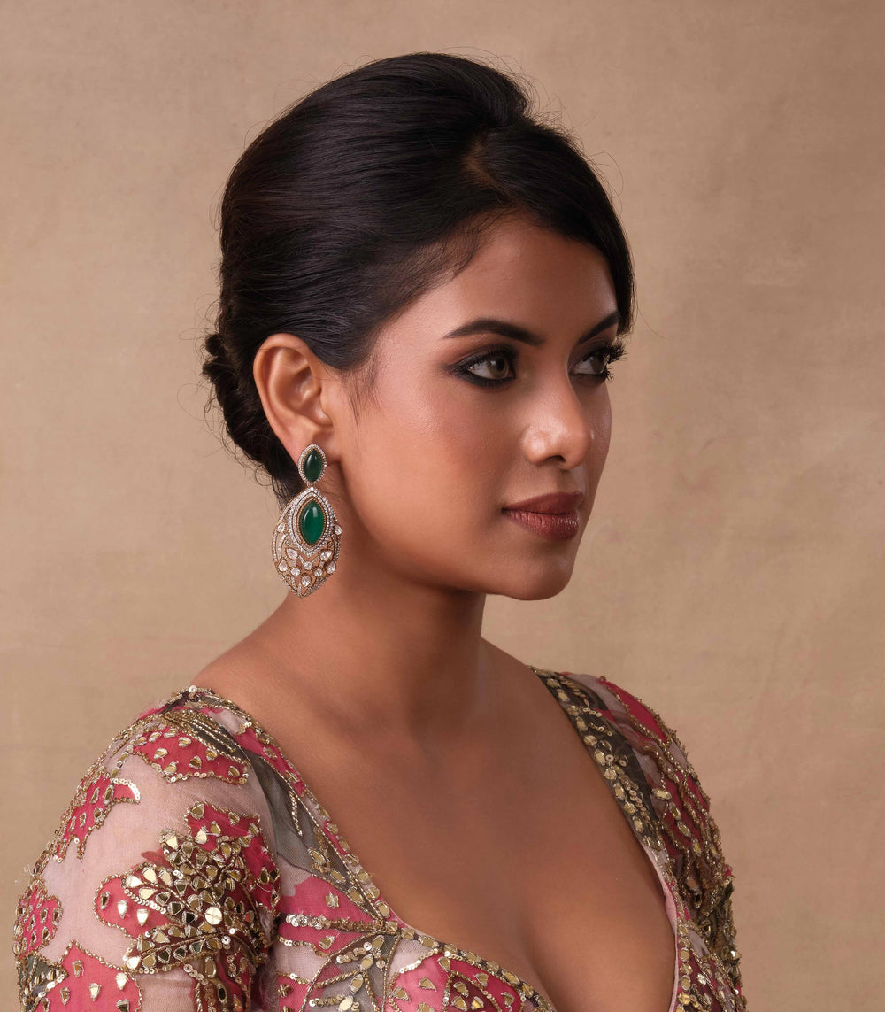 SANDHYA GREEN ZIRCON STATEMENT EARRING