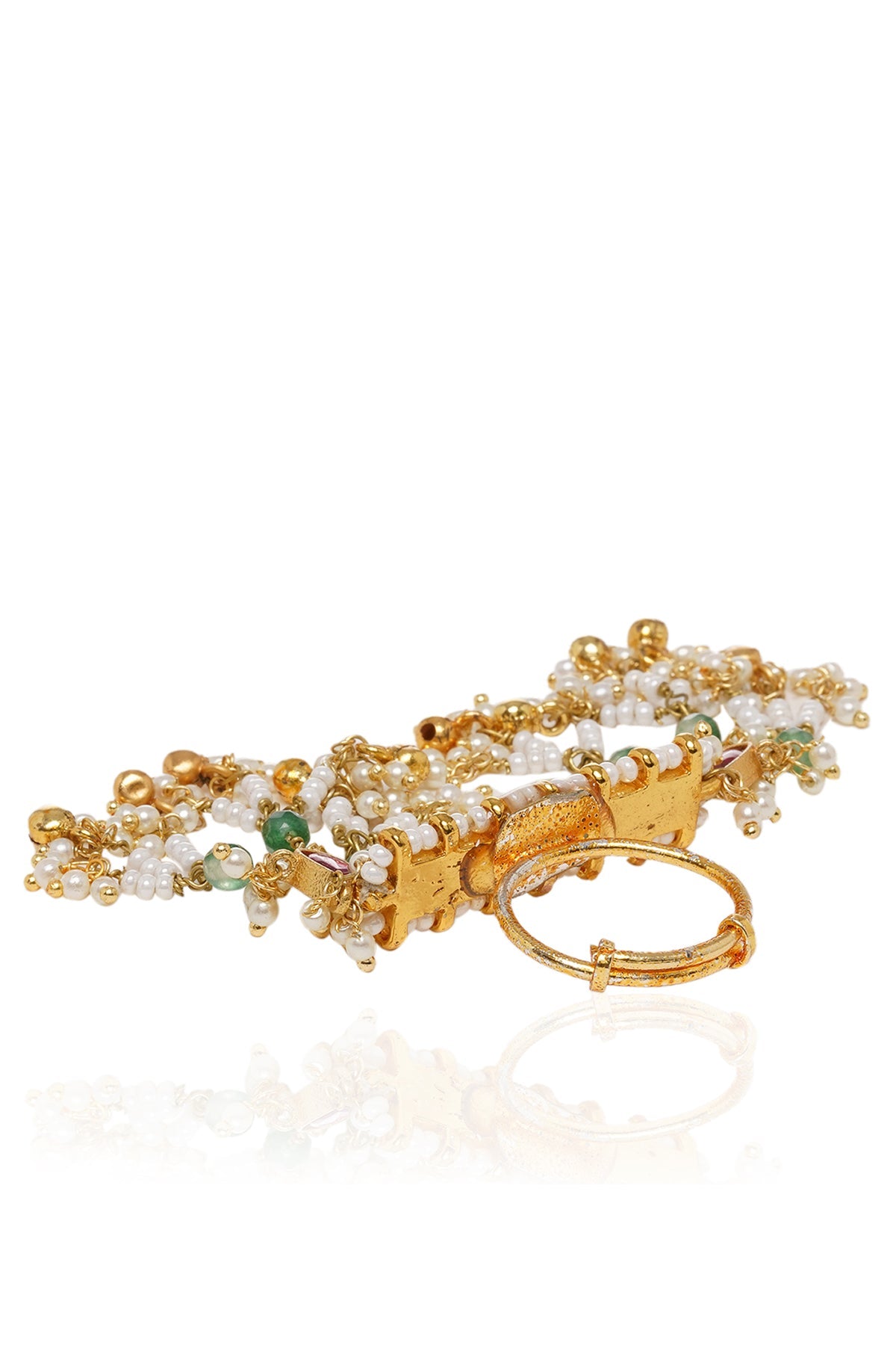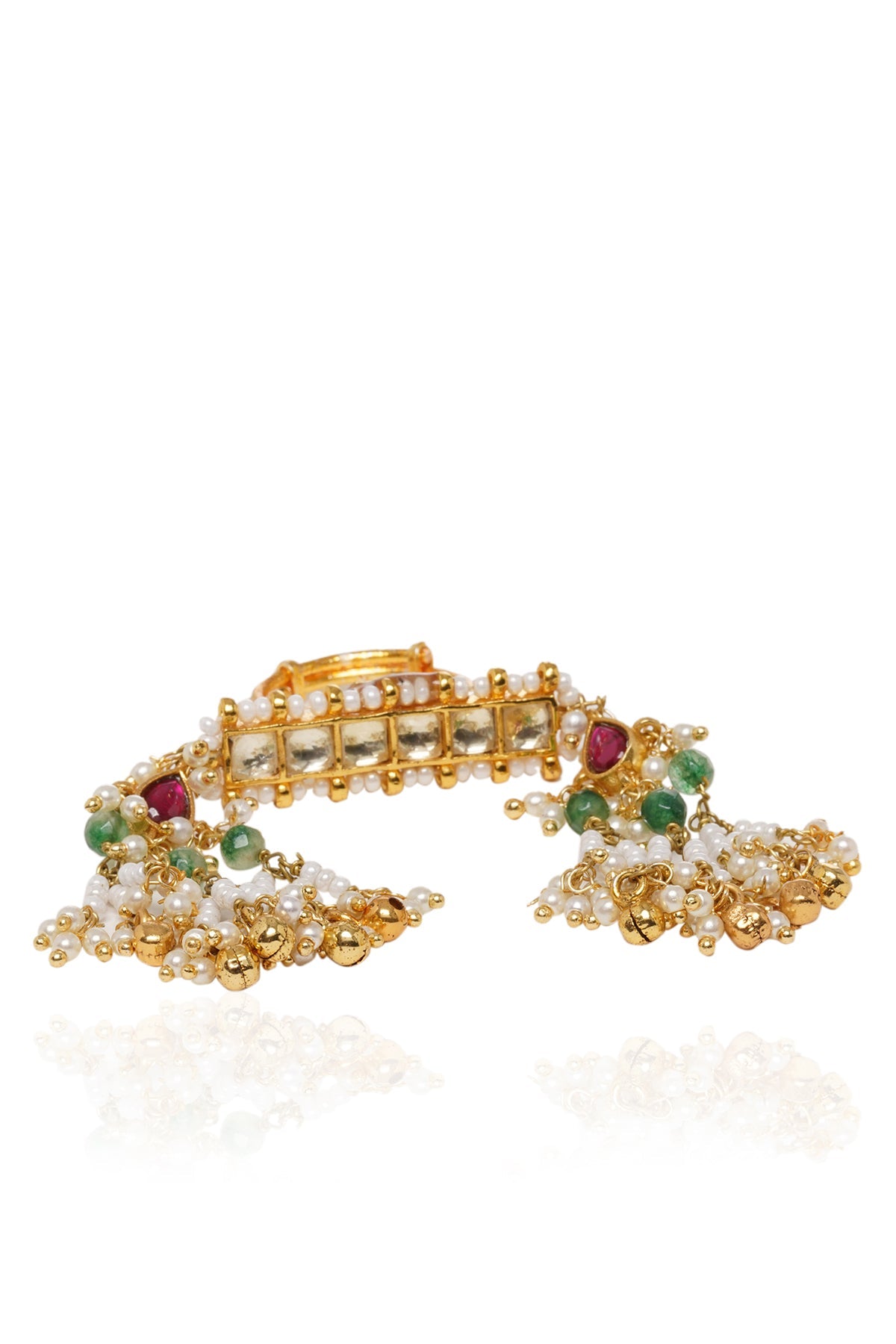 Step into unparalleled elegance with our Gold-Plated Kundan Toering, boasting a uniquely captivating design. Set apart from the rest, this accessory emits individuality and charm, ensuring you stand out with every step.